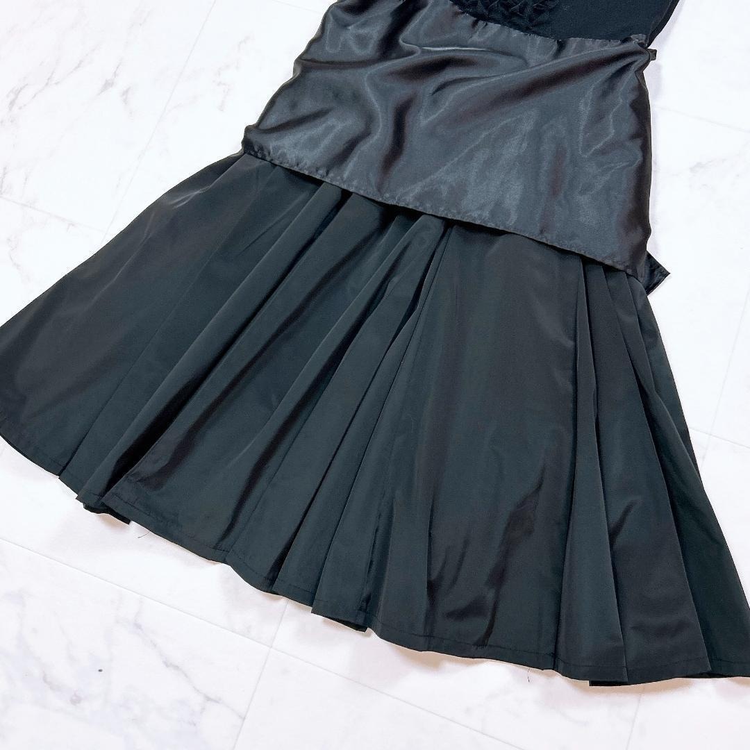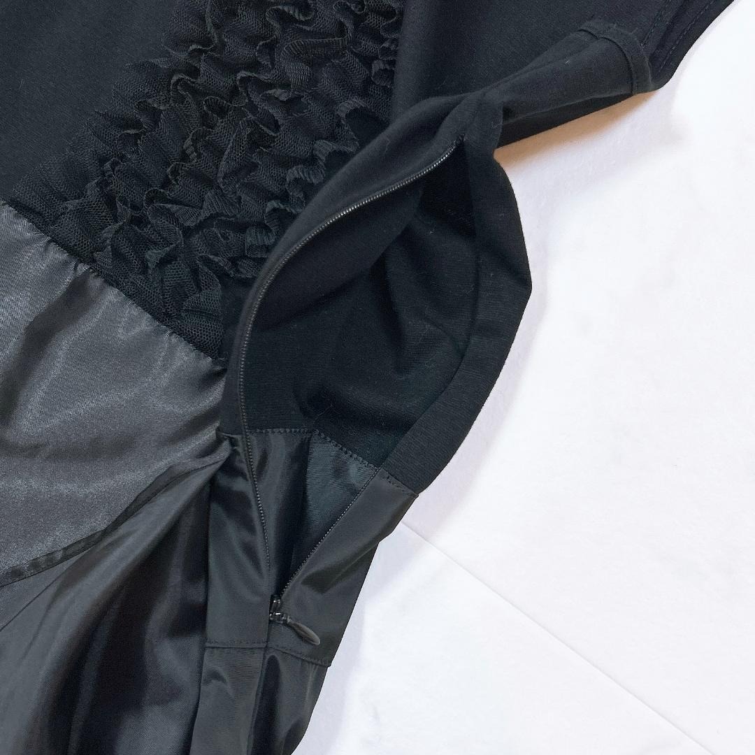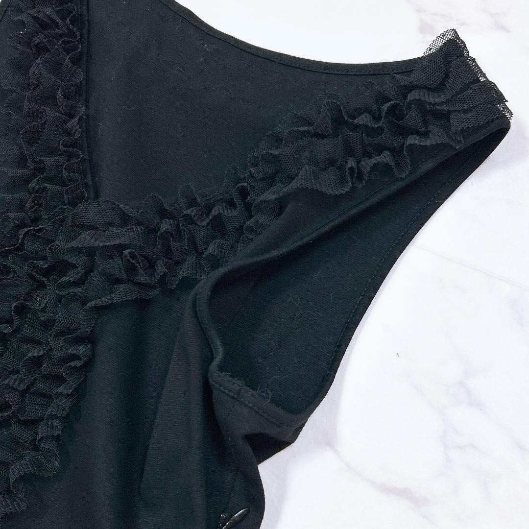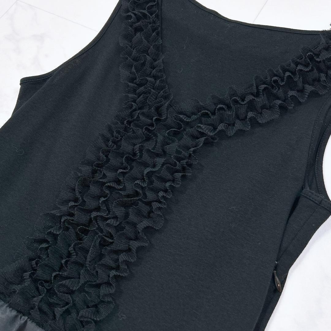 ノースリーブワンピース ドッキング 胸元フリル リボン