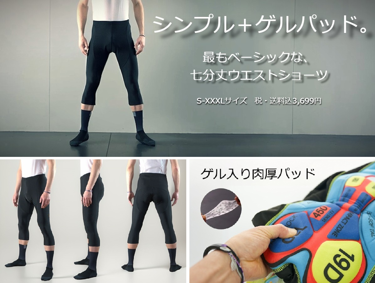サイクルパンツ 「無印!シンプル七分丈ウエストショーツ」 XLサイズ ロードバイク サイクルジャージ サイクルウェア ハーフパンツ