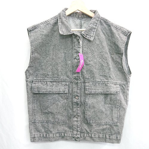 ◇ ⊂◎●未使用● gossip!ロサンゼルス デニムベスト サイズF グレー レディース E