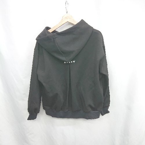 ◇ ⊇ La-gemme ラジェム パール装飾 長袖 パーカー サイズL ブラック レディース E