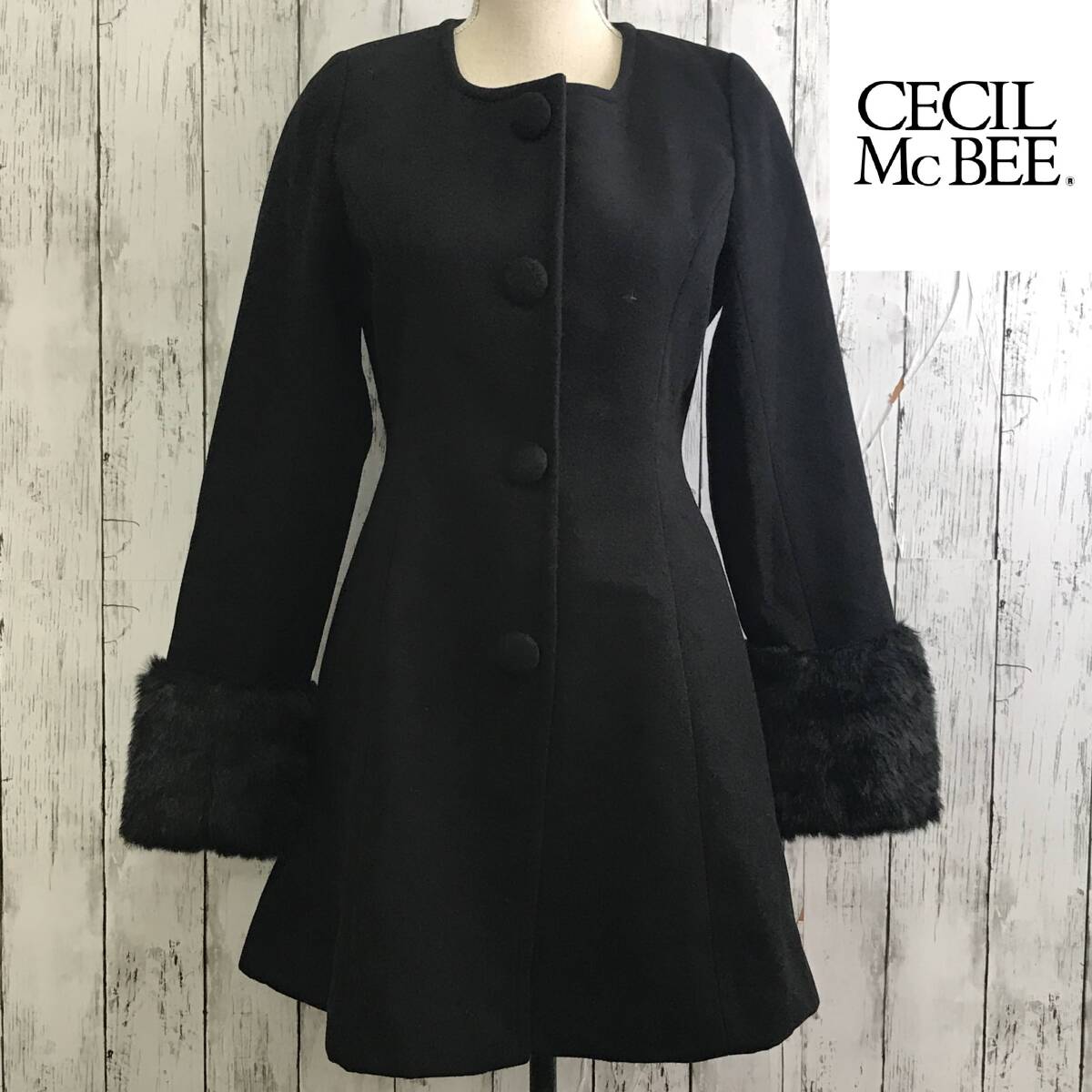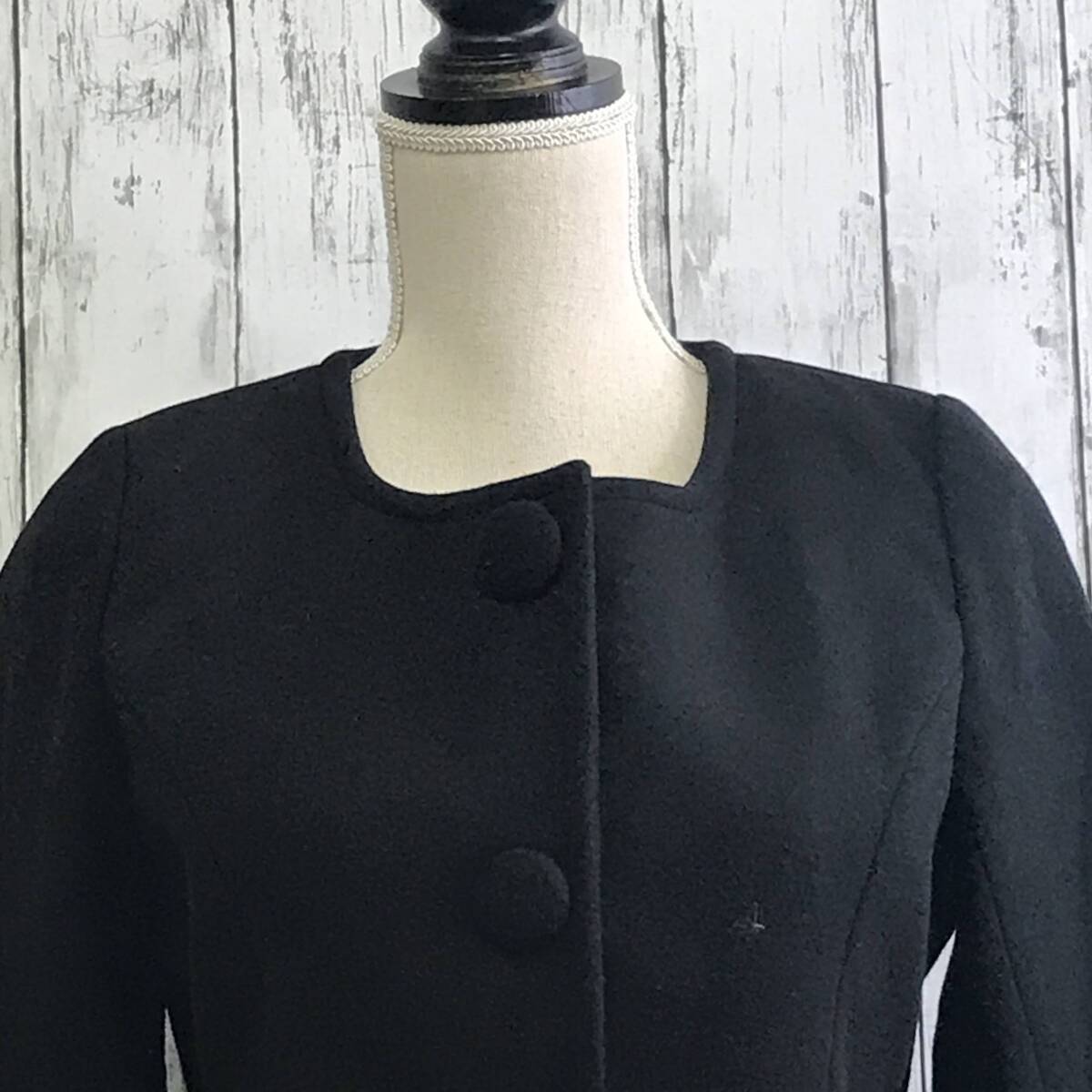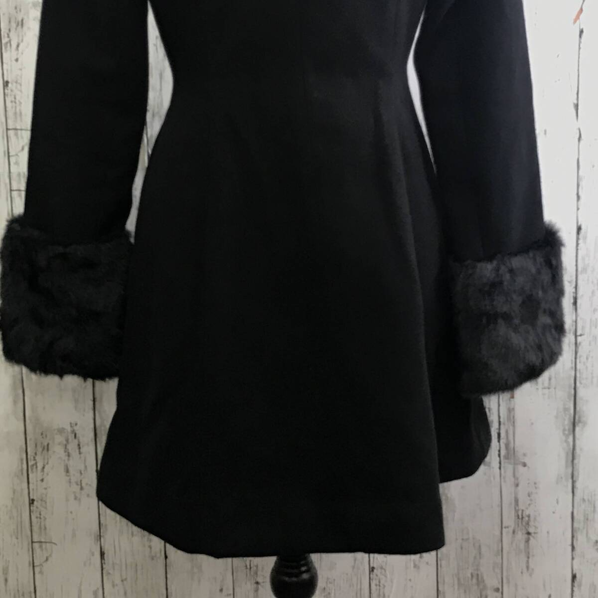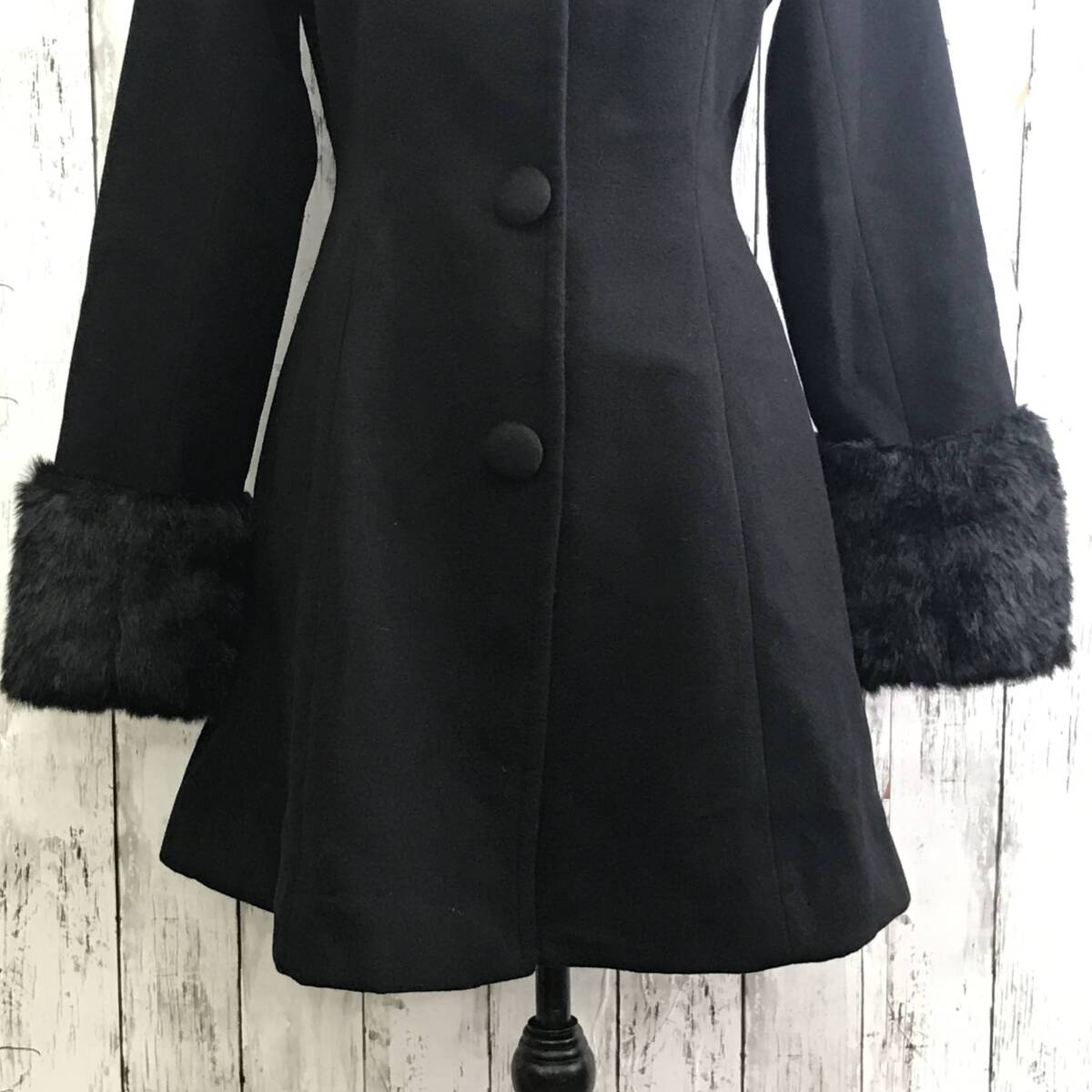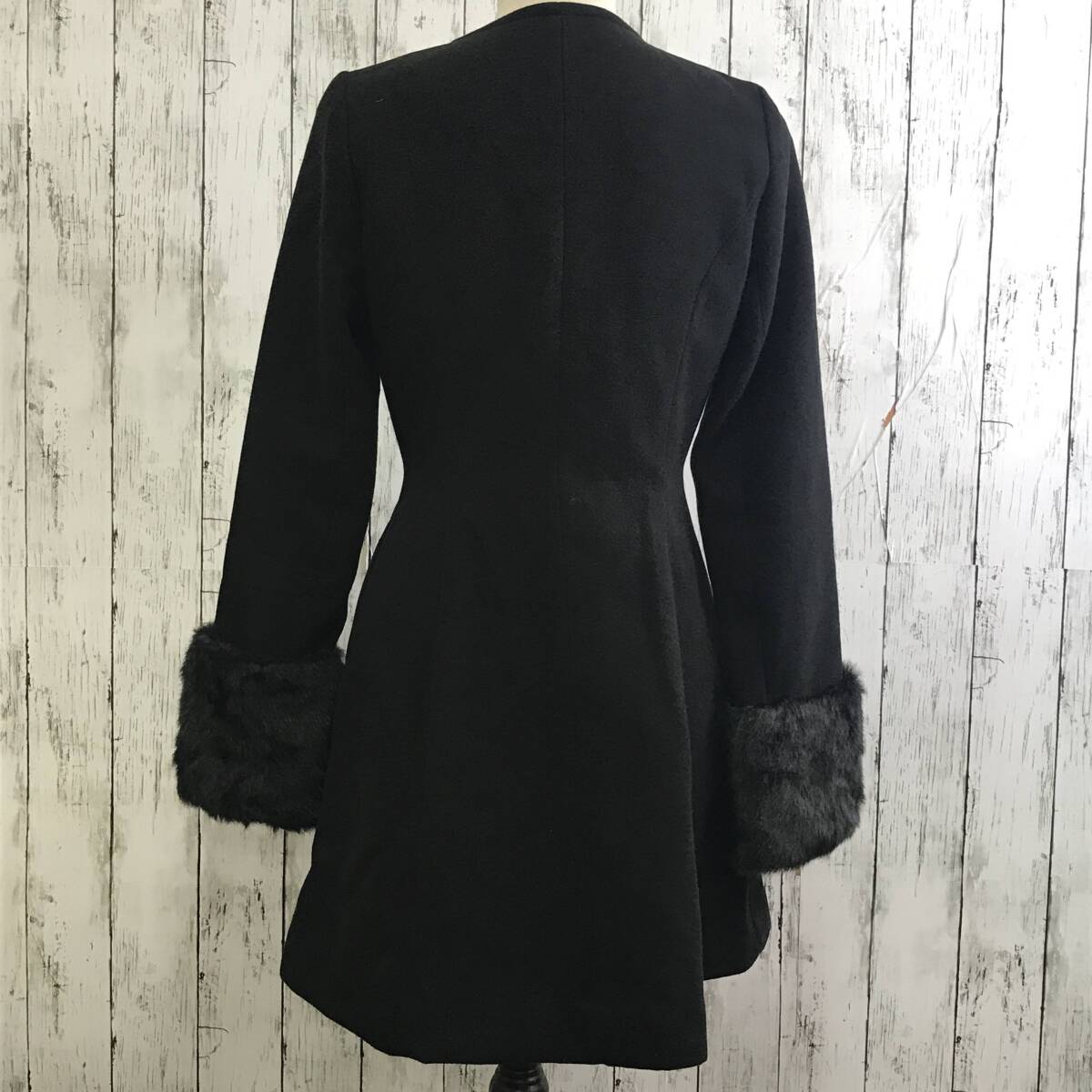 | 商品説明 | 商品名/ノーカラーコート サイズ/M 着丈80cm 身幅45cm 肩幅33cm 袖丈65cm 素材/表地 ポリエステル70% レーヨン30% 裏地 ポリエステル100% 袖部分 フェイクファー ポリエステル100% 中わた ポリエステル100% 商品状態/目立った傷、汚れ無し |