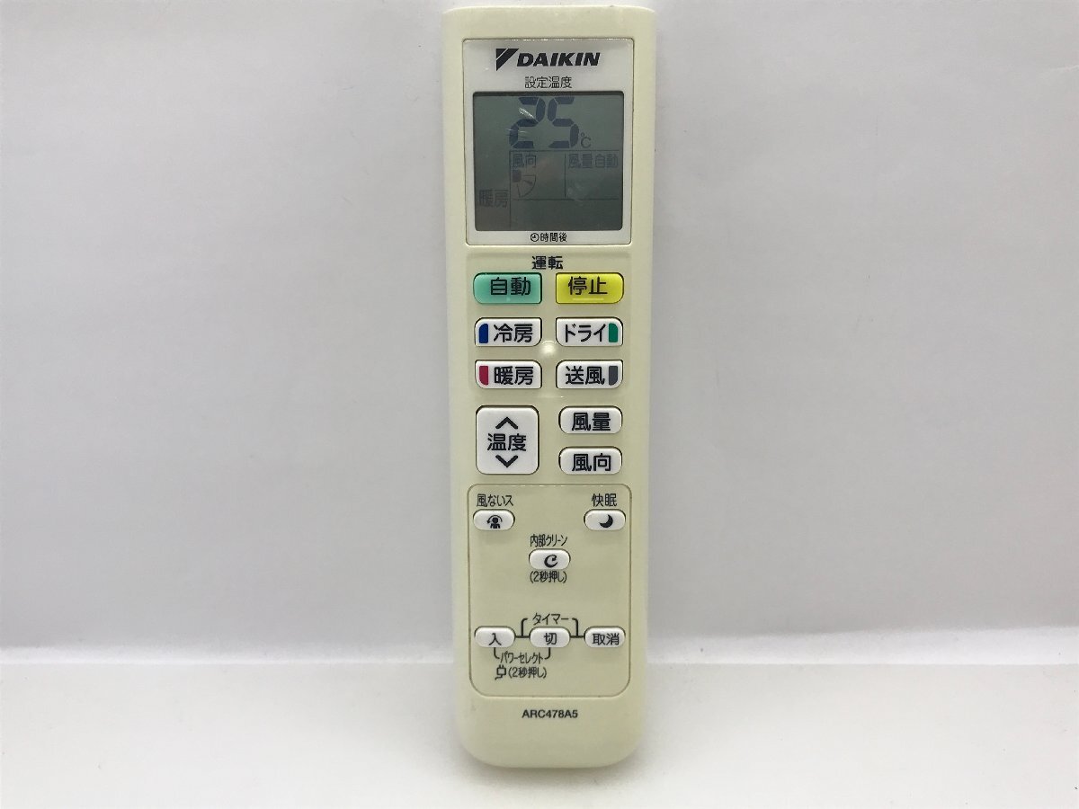 DAIKIN エアコン用リモコン ARC478A5 中古品C-9967