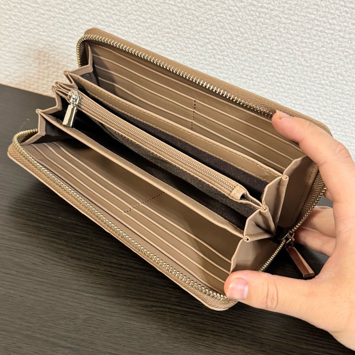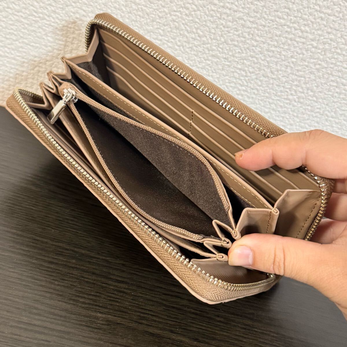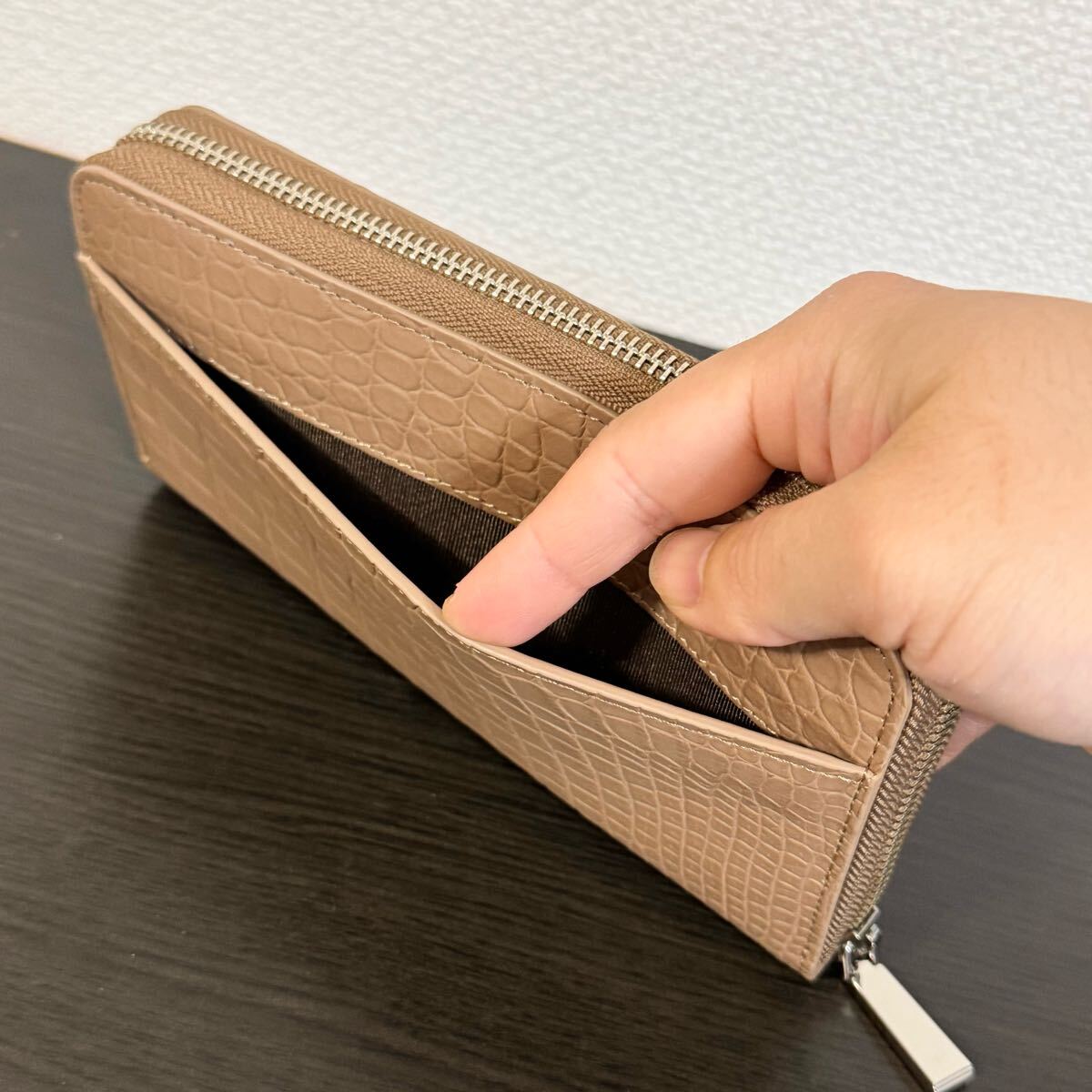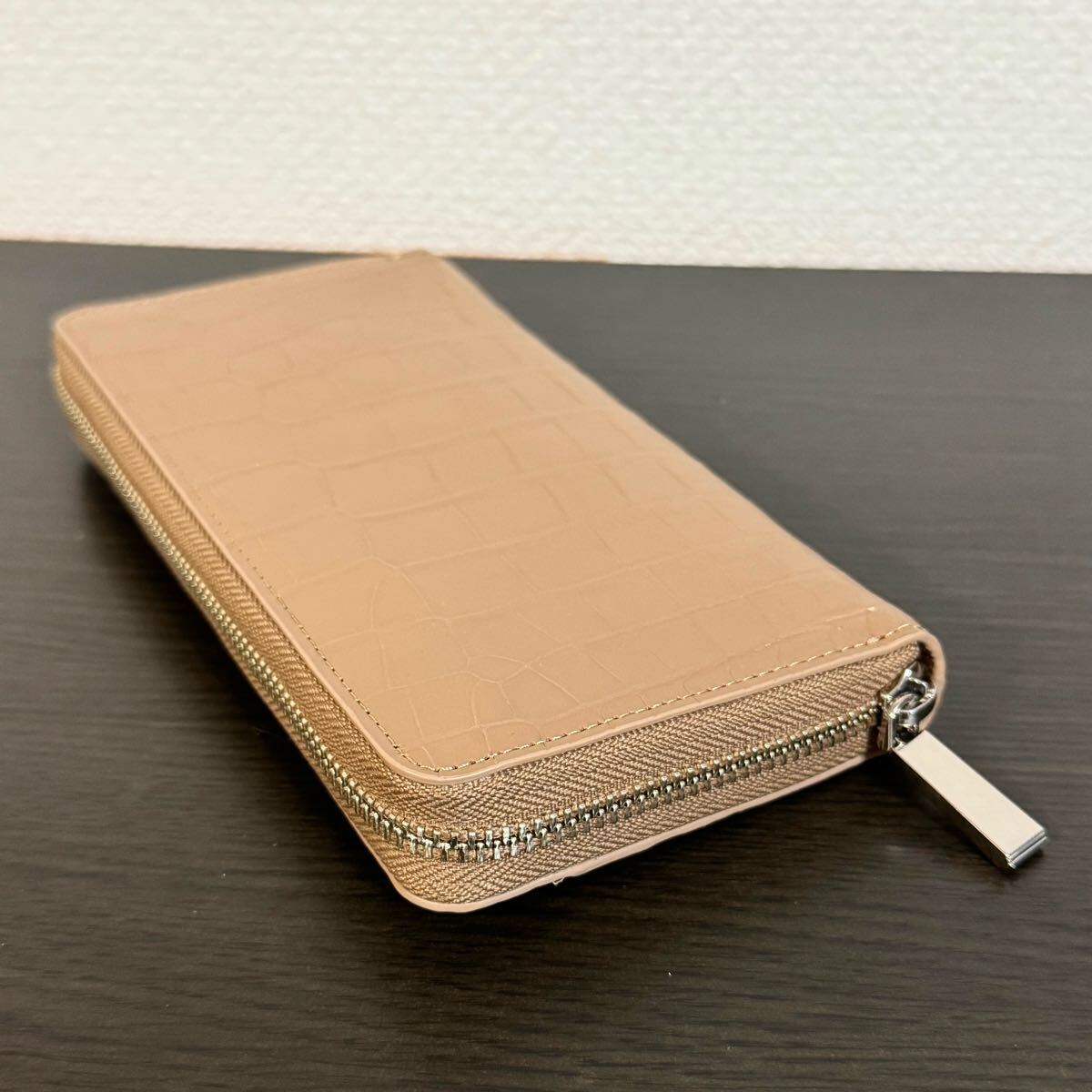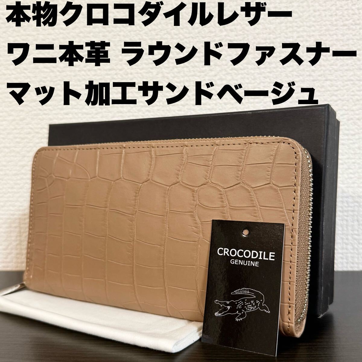 マット加工クロコダイル本革の長財布(サンドベージュ)になります。