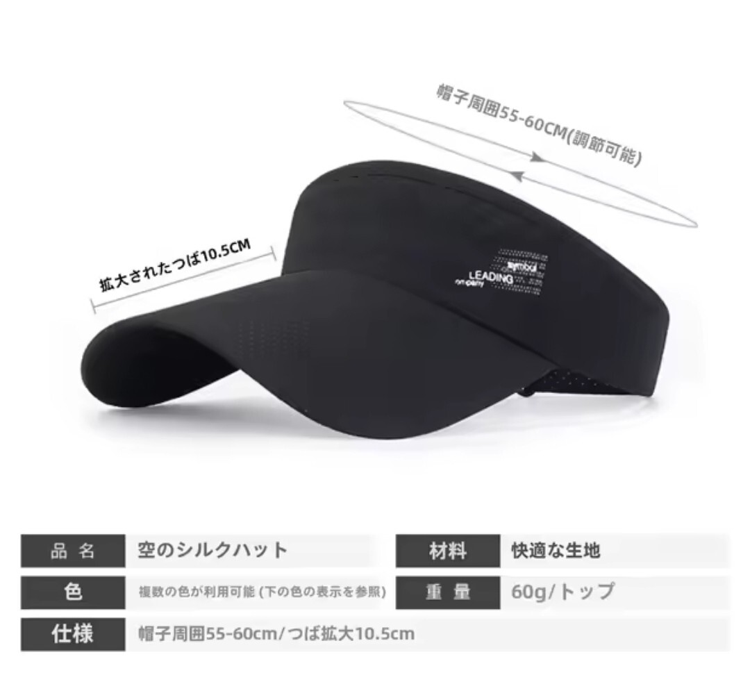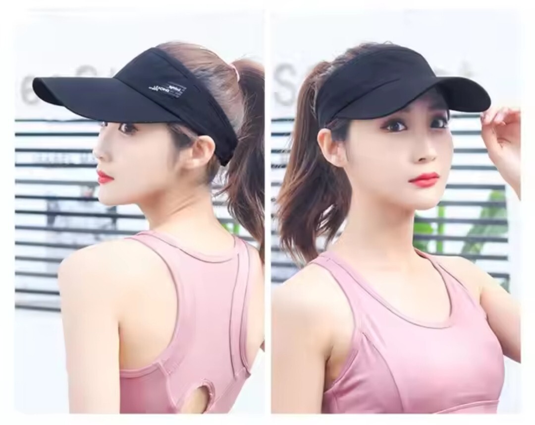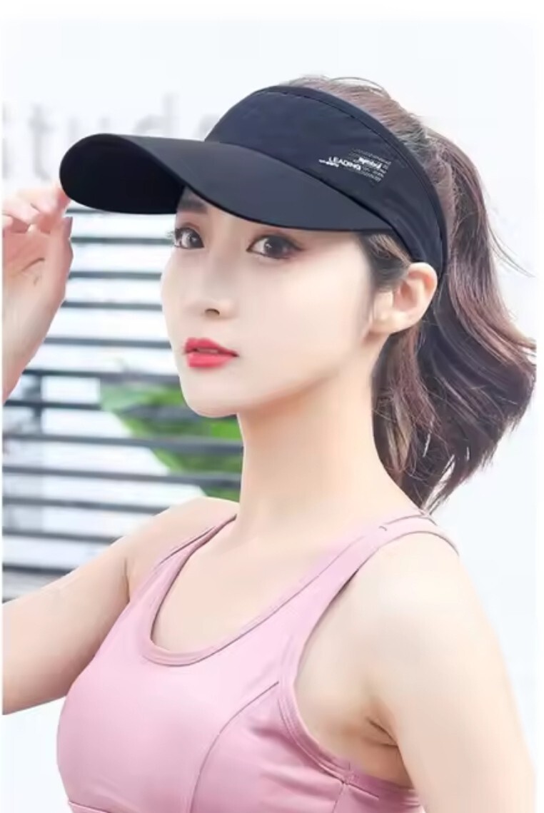 ランニングやゴルフなど、様々なスポーツシーンで活躍する、スタイリッシュなブラックのサンバイザーです。