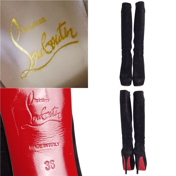 | 美品 クリスチャンルブタン Christian Louboutin ブーツ ロングブーツ スウェード ヒール シューズ 36(23cm) ブラック |