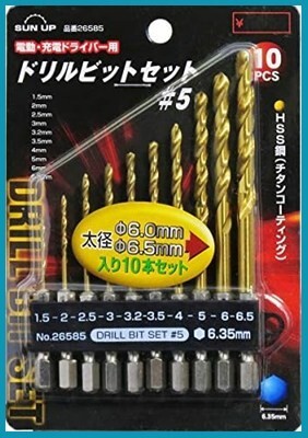 【新品送料無料】近与(KONYO) SUN UP ドリルビットセット 10本組 太径6.0mm6.5mm入 #5 (金属・金工)