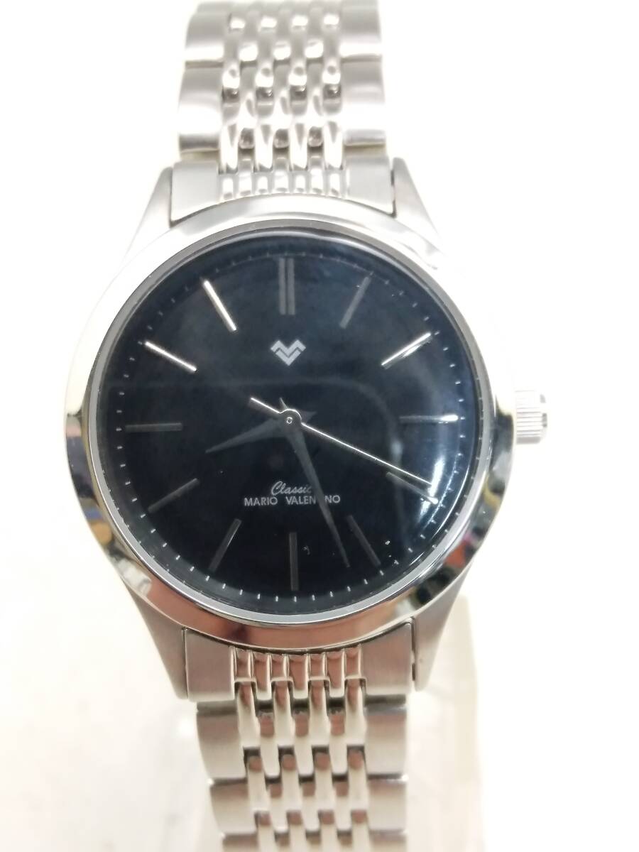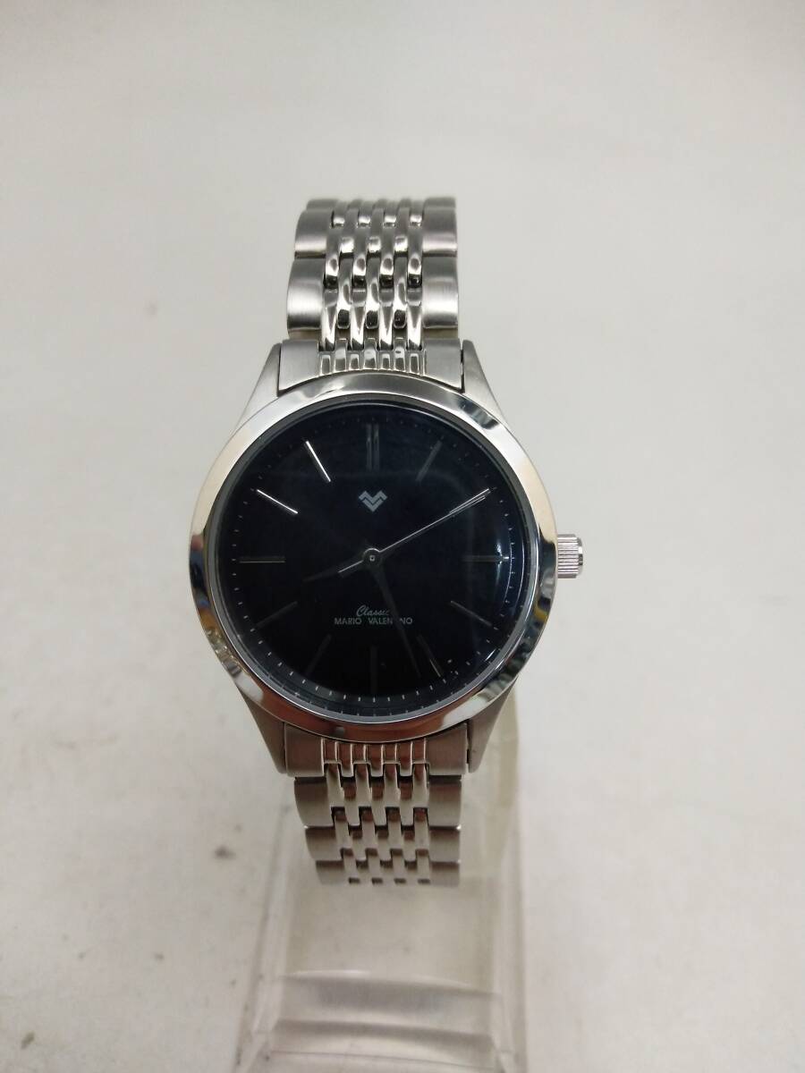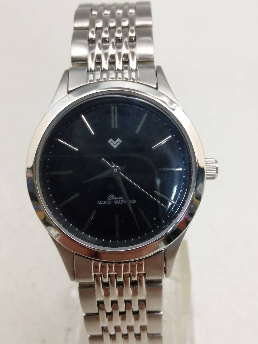 0919-0008  中古★MARIO VALENTINO マリオ ヴァレンティノ ウォッチ 腕時計 MV-507 QZ クォーツ シルバー黒文字盤 レディース