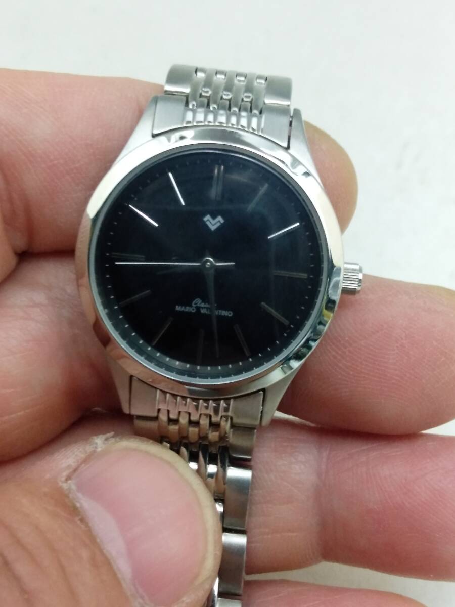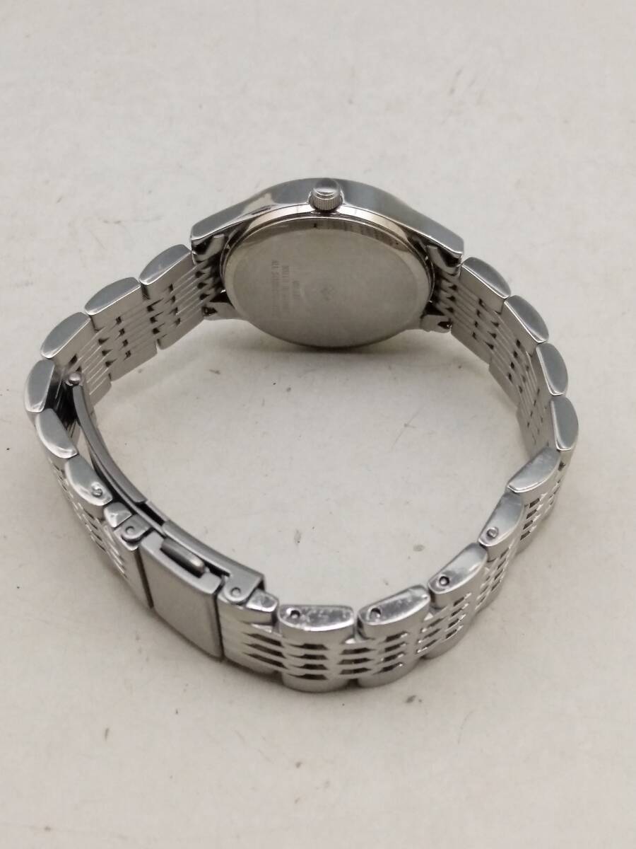 0421-0009  中古★MARIO VALENTINO マリオ ヴァレンティノ ウォッチ 腕時計 MV-507 QZ クォーツ シルバー 黒文字盤 レディース