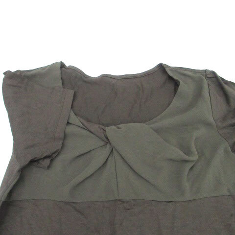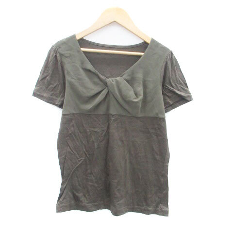 コムサデモード COMME CA DU MODE カットソー Vネック 半袖 切替 9 M カーキ /HO30 レディース