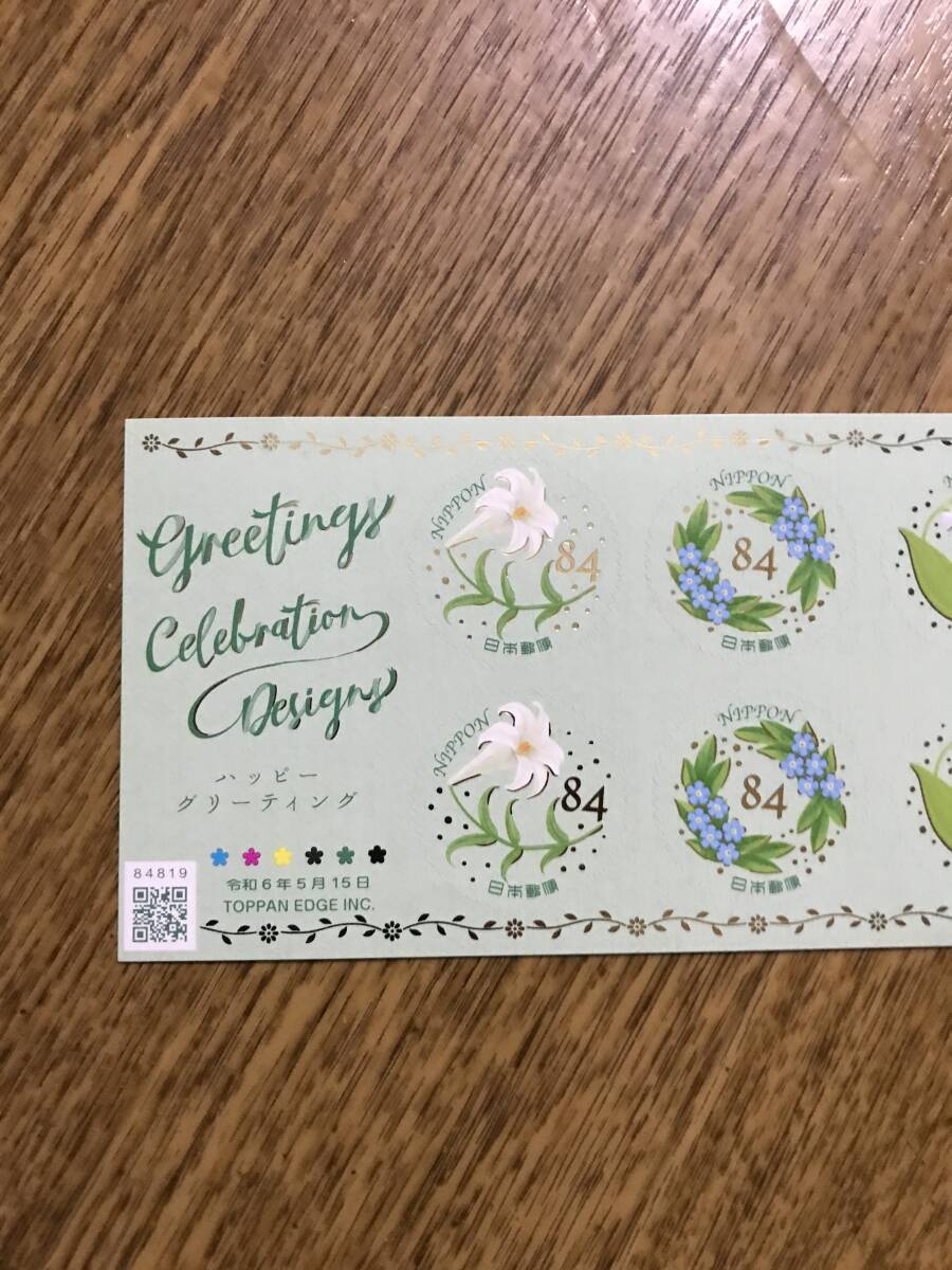 ★「ハッピーグリーティング」:シール切手シート(84円×10枚=840円分)です。
