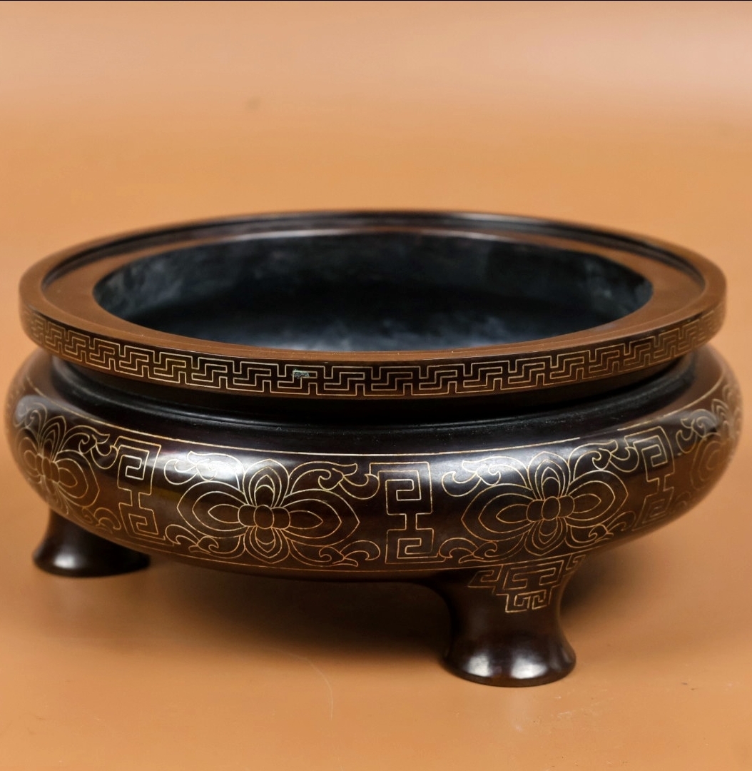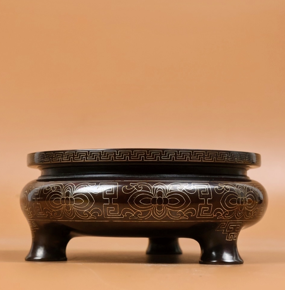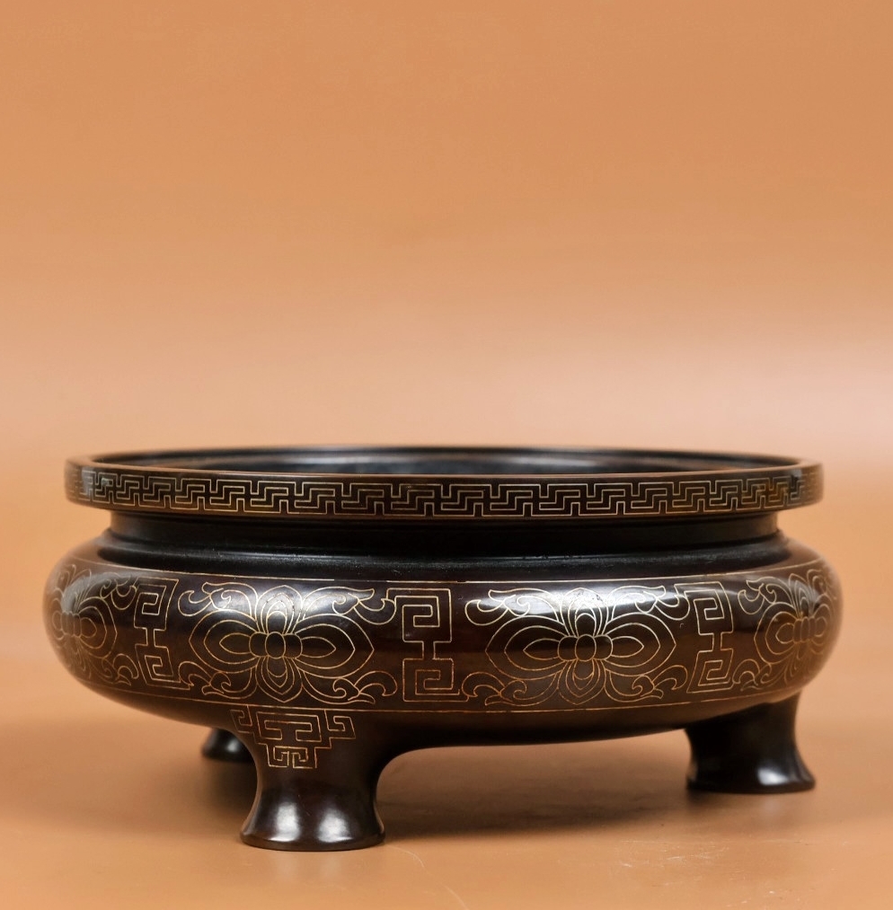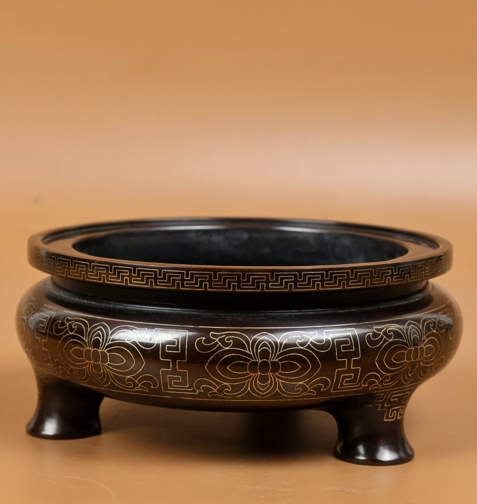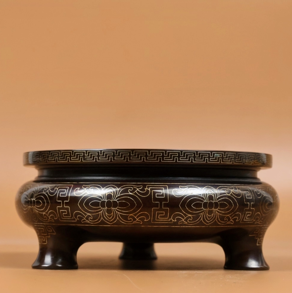 *珍品旧蔵* 清 紫銅 錯銀絲 鬲式炉 香道具 銅製 唐物 中国古玩 骨董品 H44