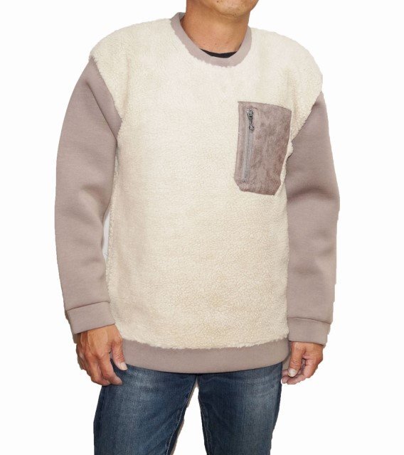 ニコル rhenium HIDEAWAYS ボアトレーナー ベージュ メンズ シェルパ 1565-9809 冬物 スウェット 防寒 防風 耐寒 保温 ハイダウェイ オーバーサイズ ゆったり |