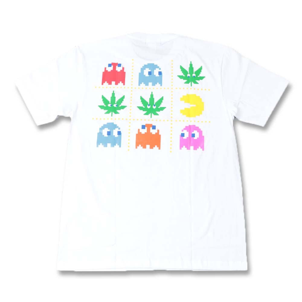 so1●新品 白 Lサイズ●RED EYES プリントTシャツ 半袖 ビッグT ビッグシルエット BIG//バンド パロディ おもしろ ネタ パックマン