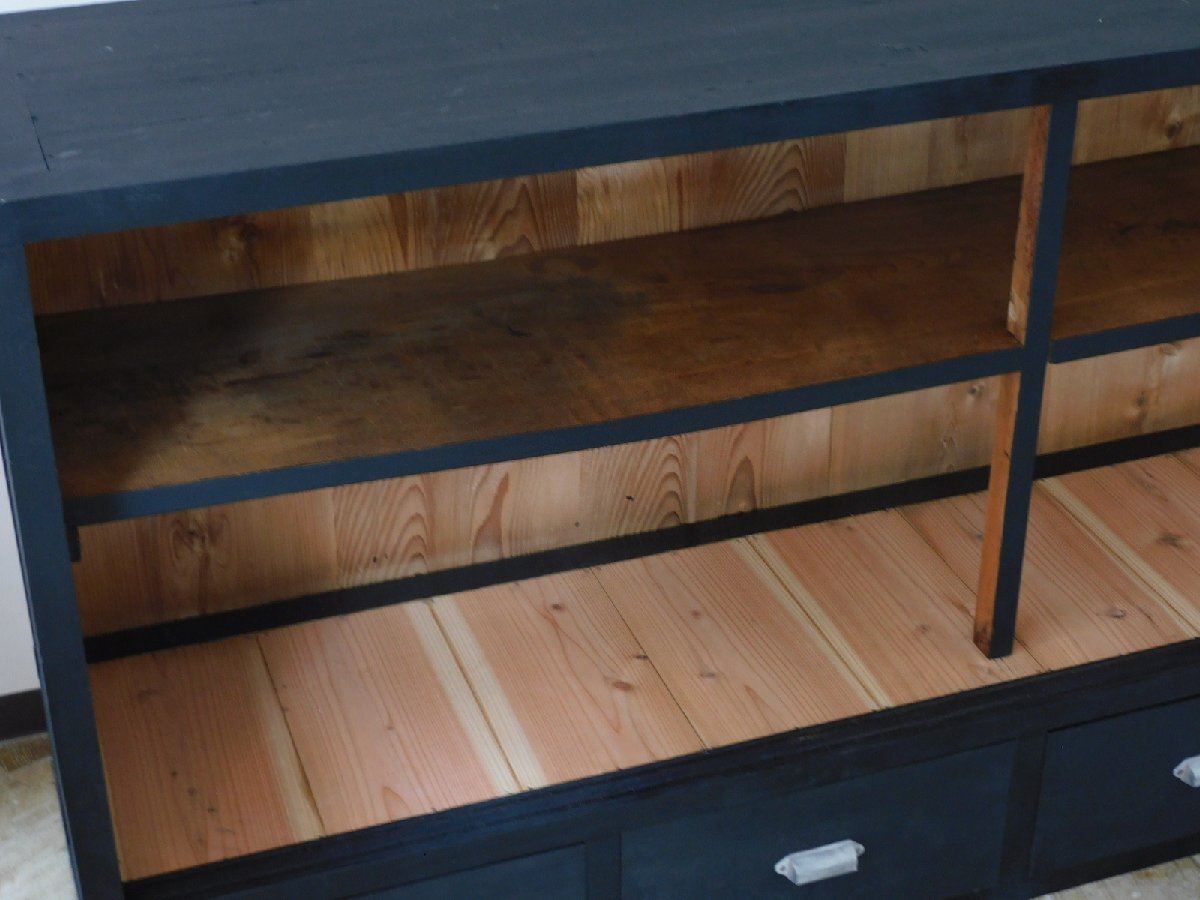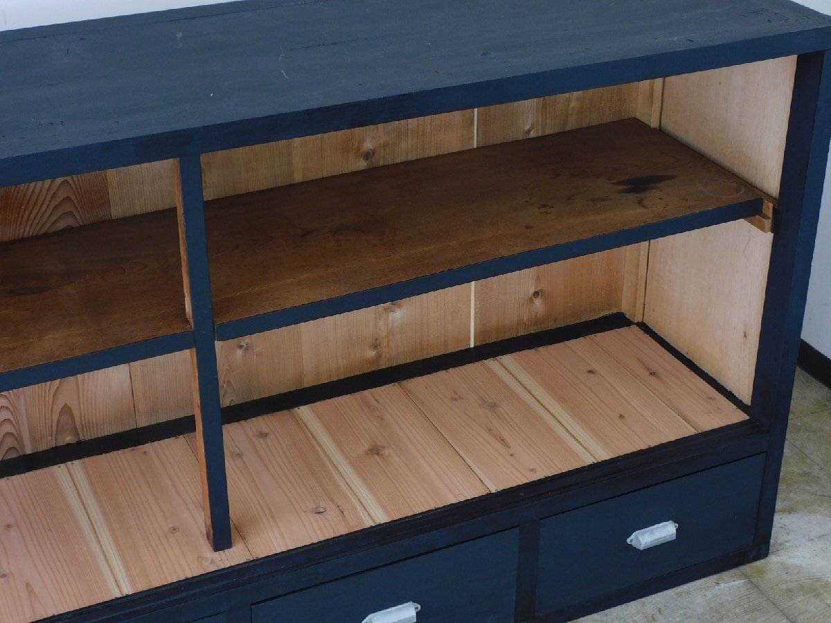 棚板は中央の支え木を外したのちに取り外すこと可能です。