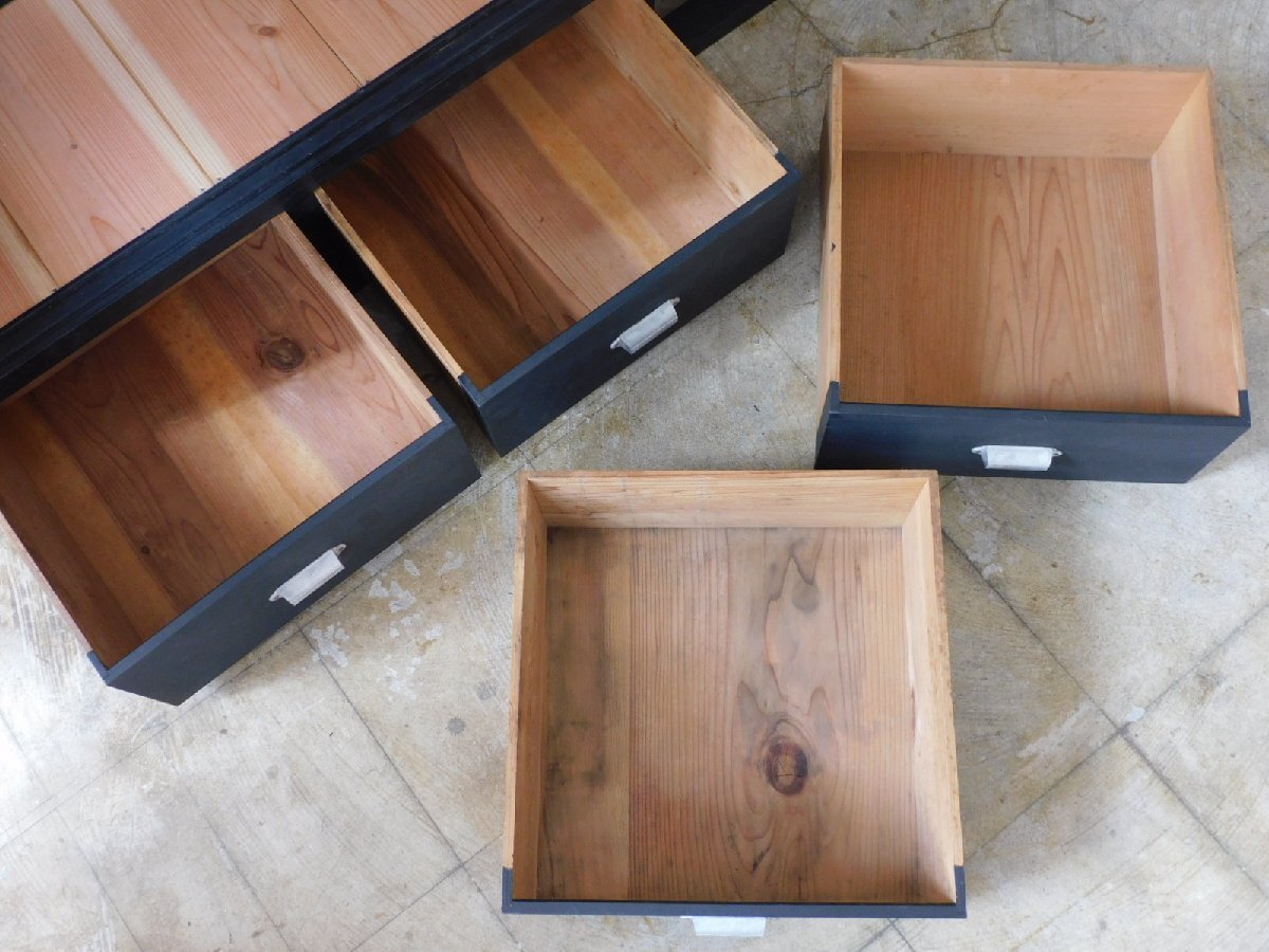 発送の際は棚板は外した状態でお送りさせて頂きます、棚板をはめてから支え木をはめる・・・という手順で取付け下さい。