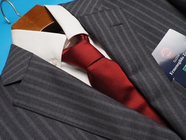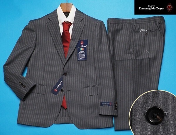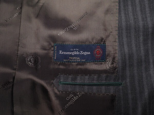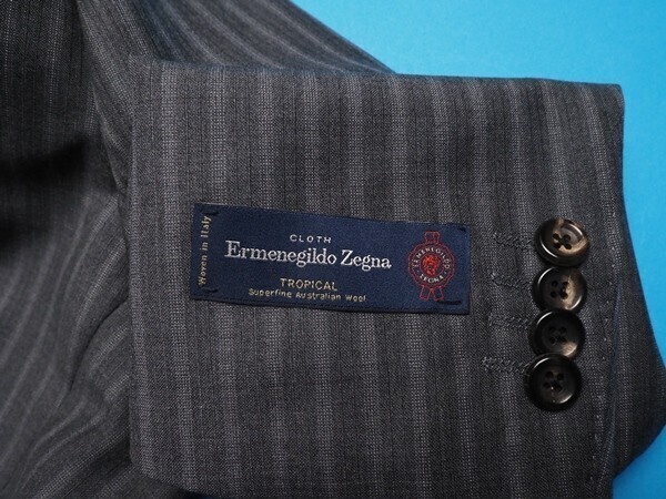 新品17.3万円 大手百貨店扱い 春夏『Ermenegildo Zegna ゼニア TROPICAL 伊製生地』ウール100% ストライプ スーツA5灰(H) 1507861