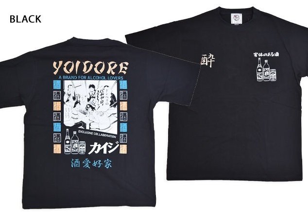 すべての酔いどれに届ける、酔いどれのためのブランド「YOIDORE」より、カイジ×YOIDOREコラボ 半袖Tシャツ「C柄」(825217)が入荷してまいりました。 酔いどれ(酔っ払い)に届ける、酔いどれ(酔っ払い)のためのブランド。 お酒をテーマにした様々なデザインを落とし込んで展開。 気鋭のアーティストや酒造メーカー、人気ショップとのコラボレーションや、型にはまらない独特の世界感を表現した新感覚のアパレルブランドです。 老若男女お酒好きな方、お酒のお供にいかがでしょうか。 漫画【賭博黙示録カイジ】と、お酒をテーマにした酔いどれのためのブランド【YOIDORE】の夢のコラボが実現! 名セリフをデザインに落とし込んだ、ファン垂涎のアイテムです!! 背中には、主人公伊藤開司が飲み会で「ドンペリのバカヤロォーッ!」と叫ぶ一コマをプリント。 ファンの方には是非手にとっていただきたいデザインです。 ややゆったりめのルーズなシルエットは適度なリラックス感があり、ラフな呑みシーンでのコーディネートに取り入れたいマストなアイテムです。 | ||||||||||||||||||||