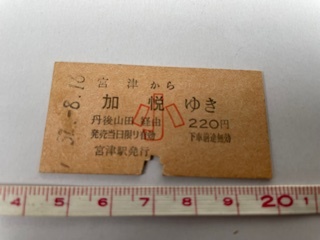| ◎宮津駅発行 宮津から加悦ゆき 丹後山田経由 220円硬券乗車券 S.57・58 小人用 店番-硬券37 | |