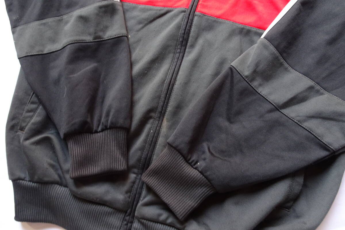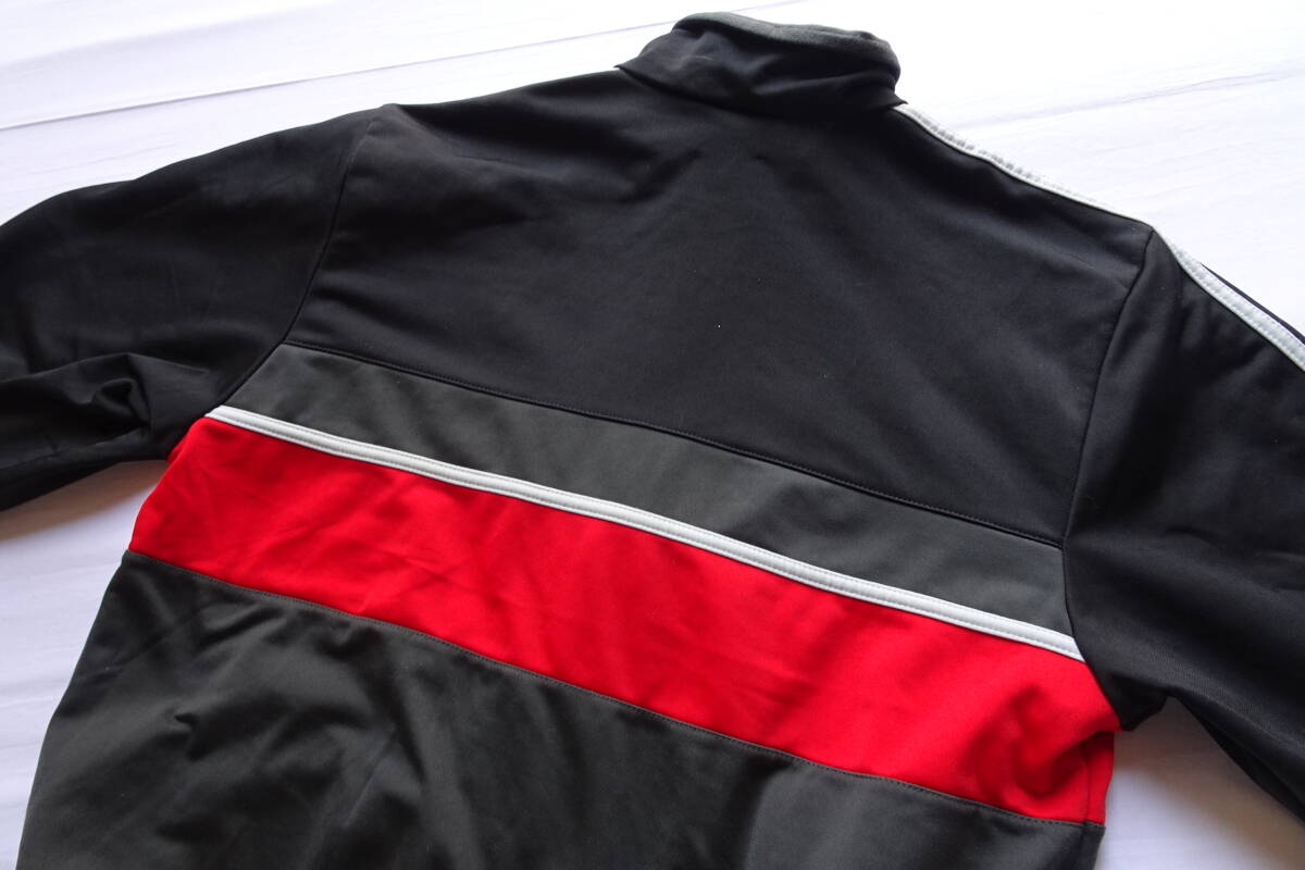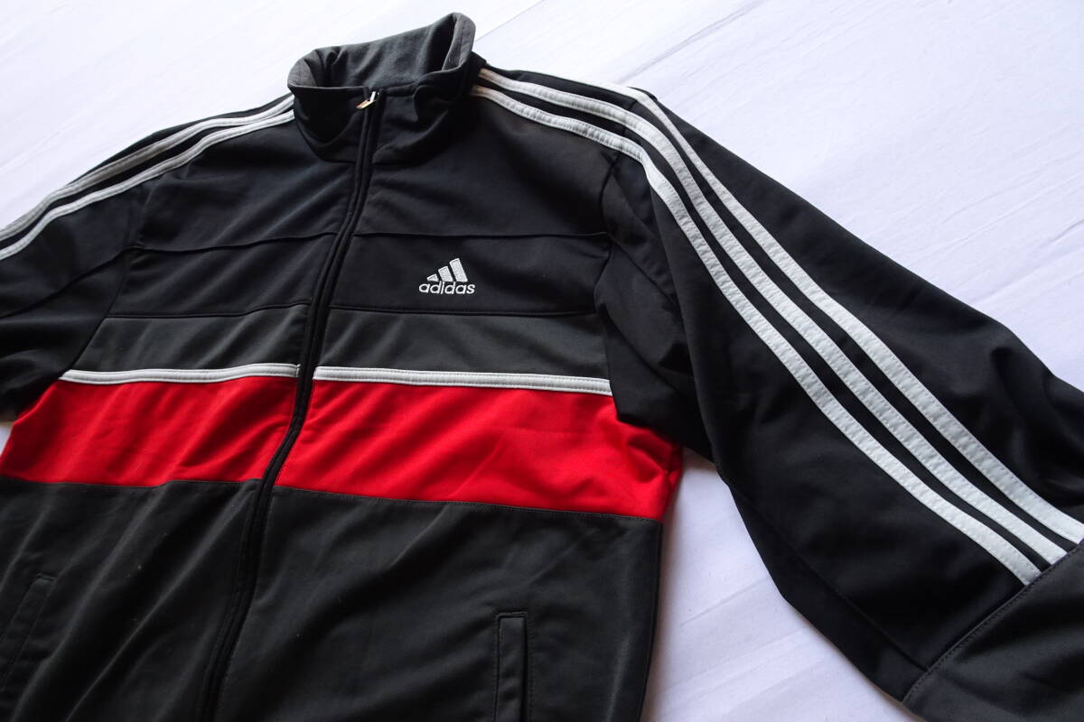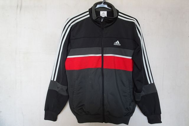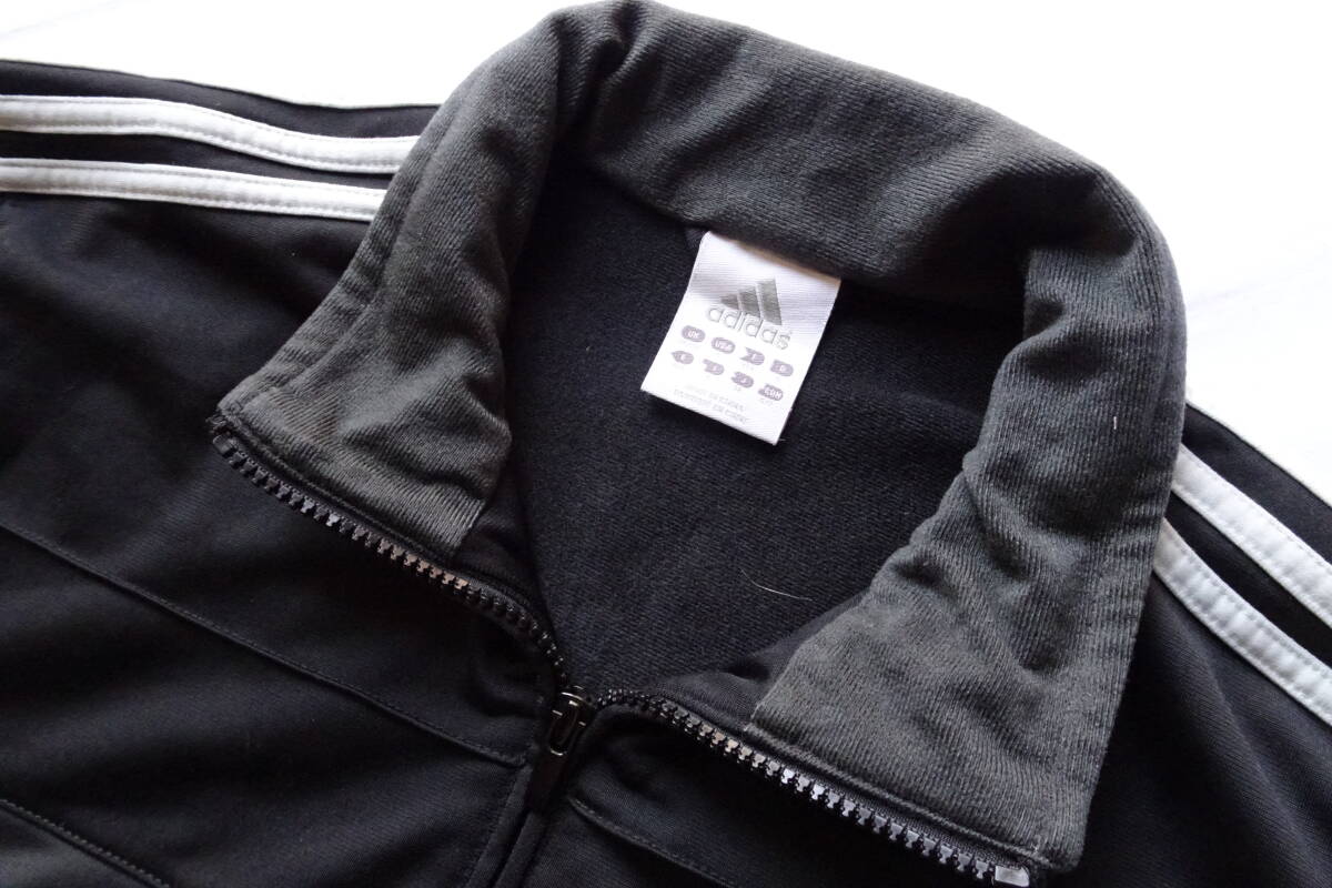 adidas/アディダス/長袖トラックジャケット/ジャージ/前ジップアップ/白3本ラインテープ/黒/ブラック/チャコールグレー/Mサイズ(4/15R7)