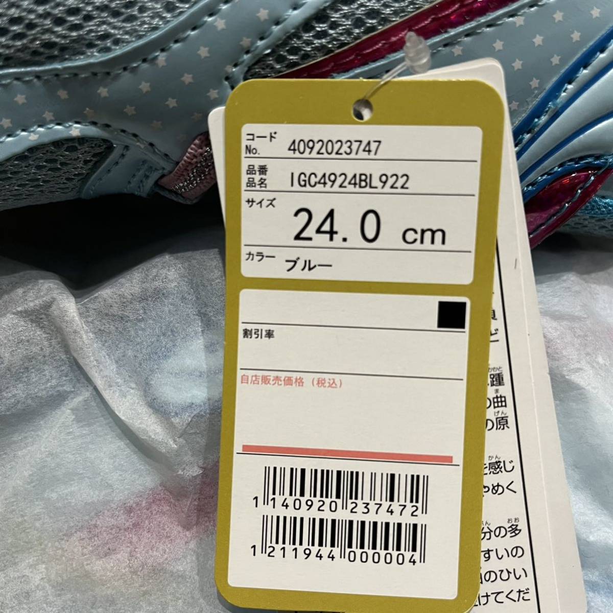 ▼IGNIO イグニオ ジュニアシューズ スニーカー 24.0㎝ ブルー IGC4924BL922 未使用 紙タグ付き お箱有り 子供用 運動靴 922 女の子用 | |||
