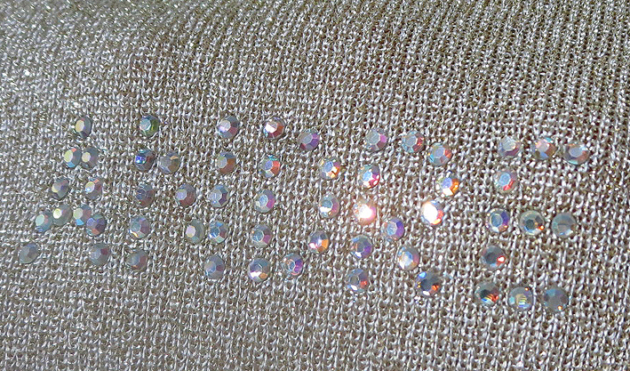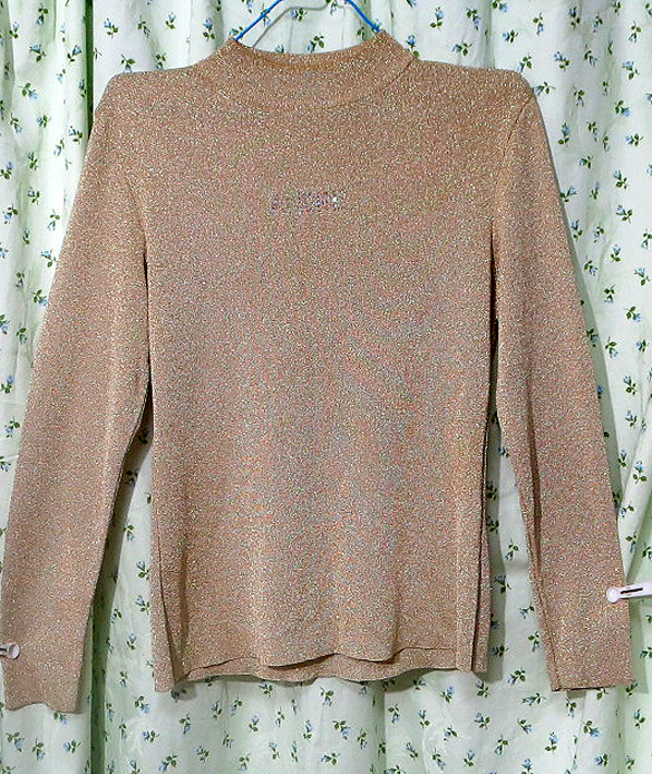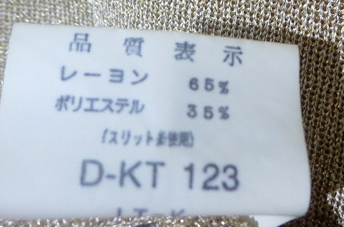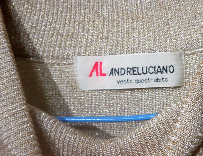 こちらは  アンドレ ルチアーノ  スリット 糸 使用  ゴールド  ニット  胸元 ロゴ入り  キラキラ ANDRE LUCIANO です