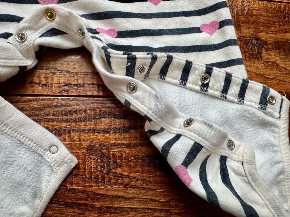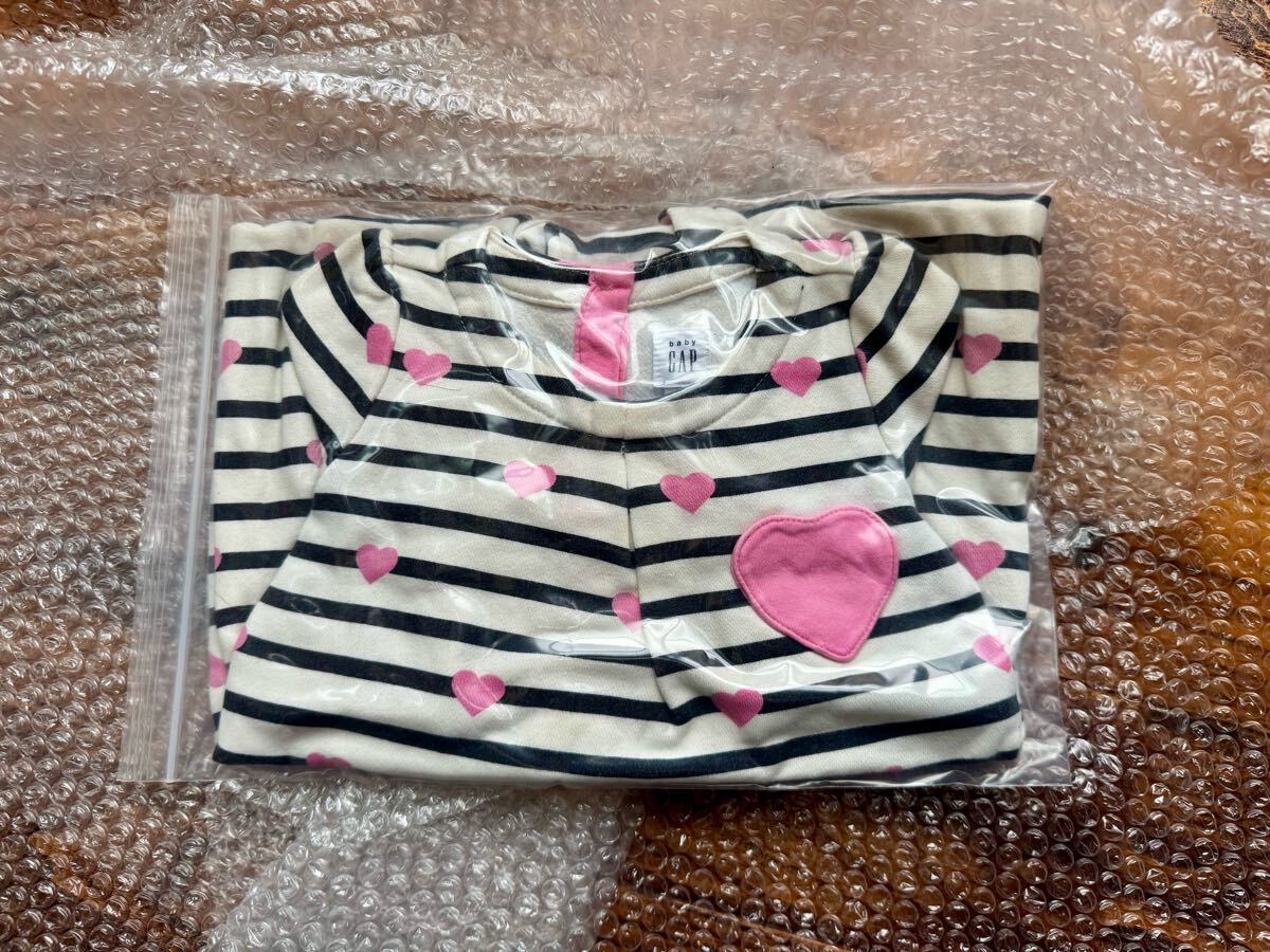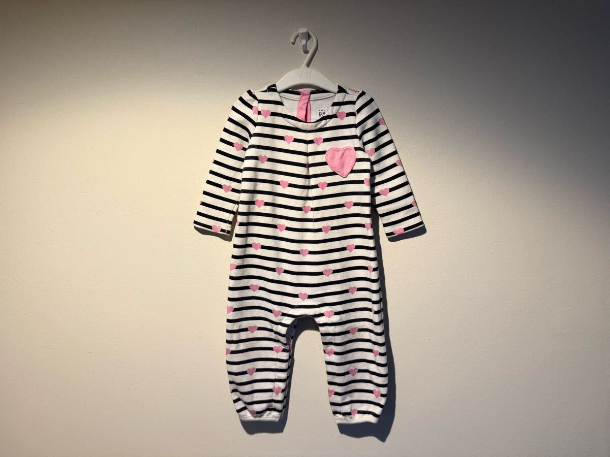 ☆送料無料☆baby GAP/ベビーギャップ カバーオール(12〜18 months baby/80)オールインワン ジャンプスーツ ボーダー&ハートピンク 女の子