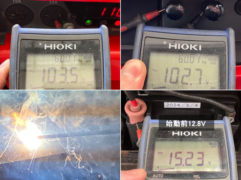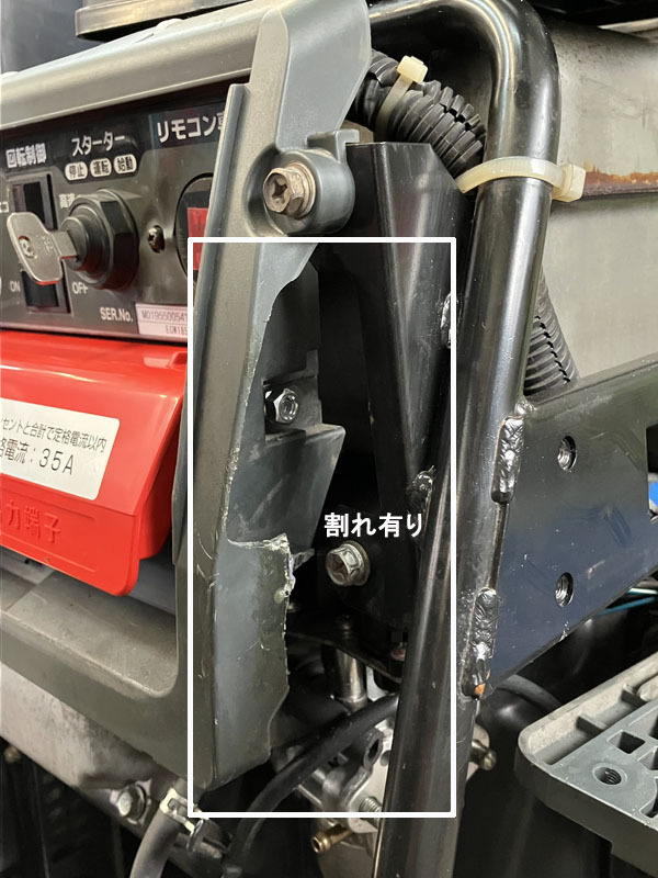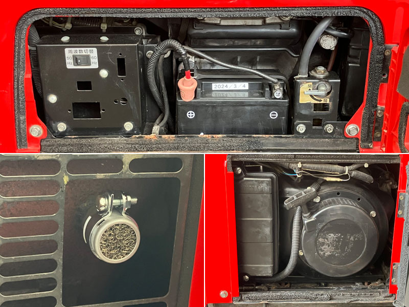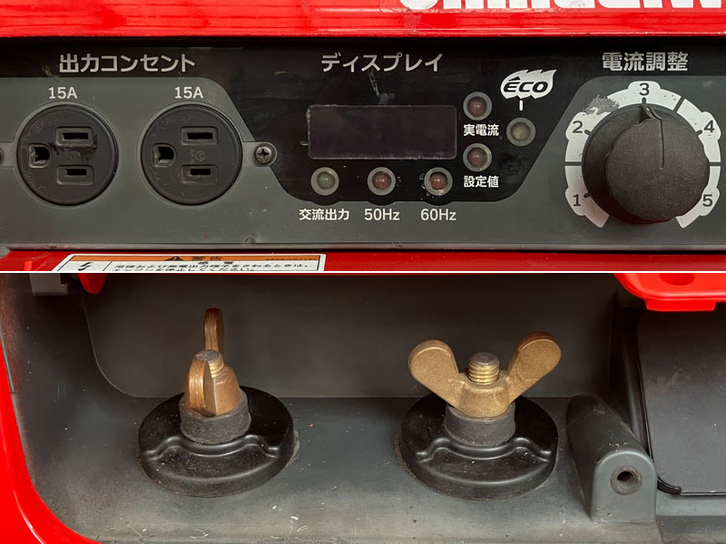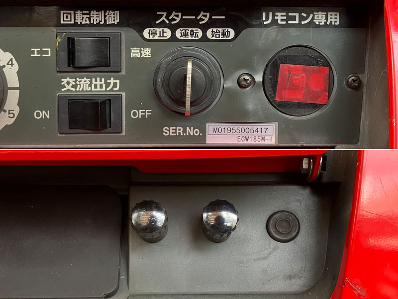 | 詳細備考 | 【備考】 4.0mm溶接棒で動作確認済みです。バッテリは現状です。 カバー割れ有り。サビ等使用感有り。 現在の運転時間は1277hです。 以下、整備内容です。 ・キャブ洗浄 ・エアクリーナー交換 ・点火プラグ交換 ・オイル交換 |