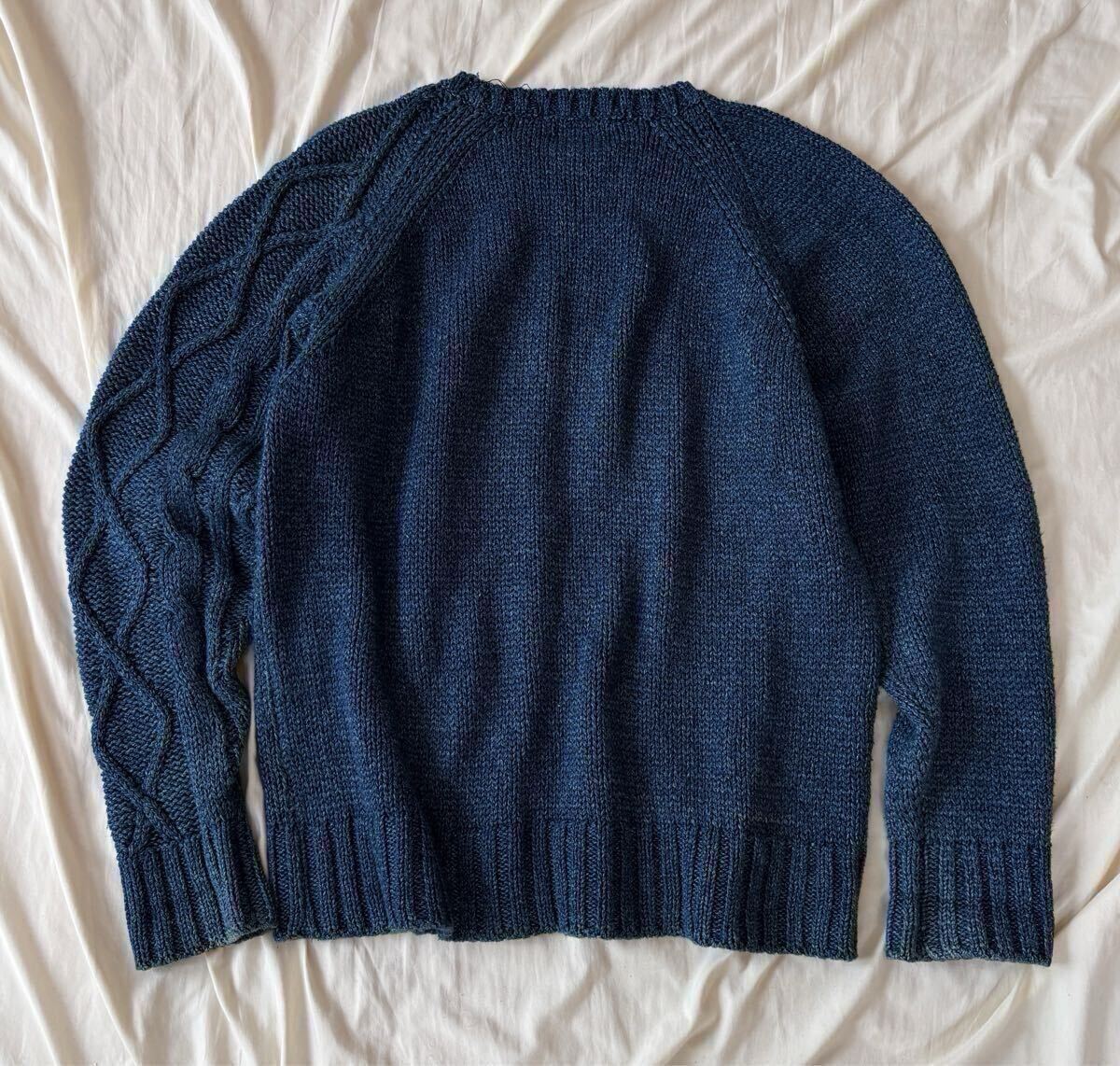 また、片袖のみに施されたアラン編みが特徴で、ユーモアと格好良さを兼ね備えたデザインが魅力です。