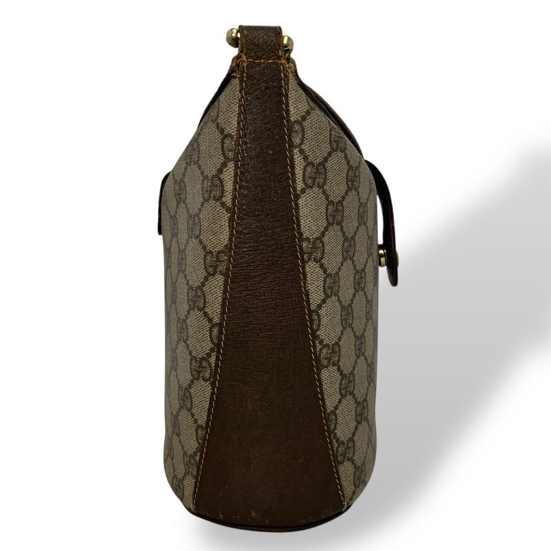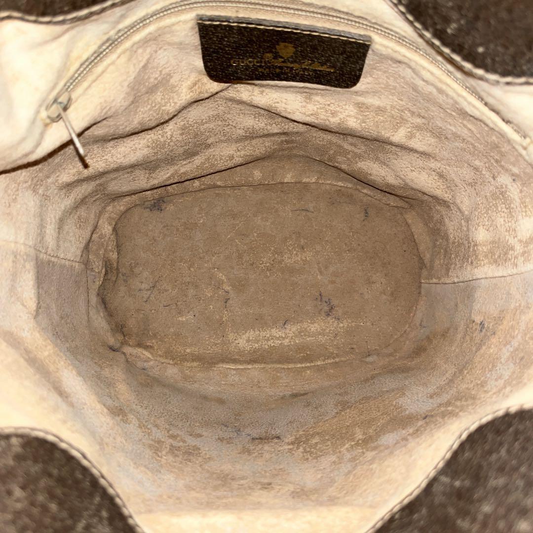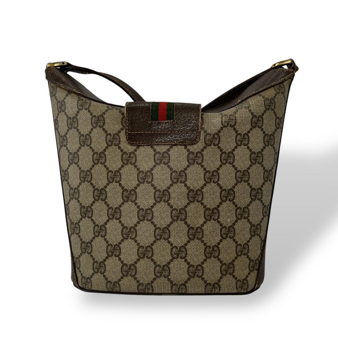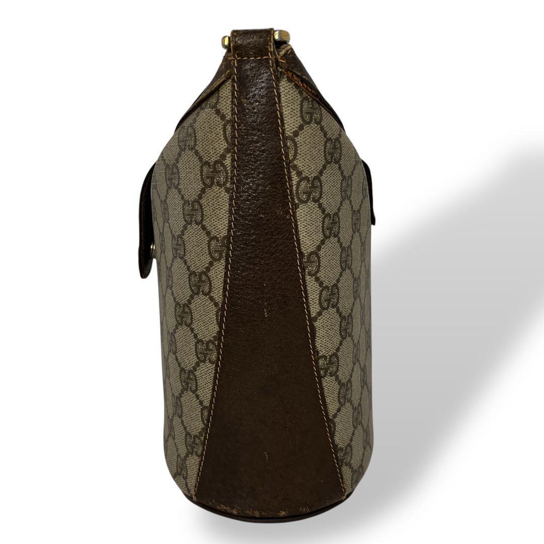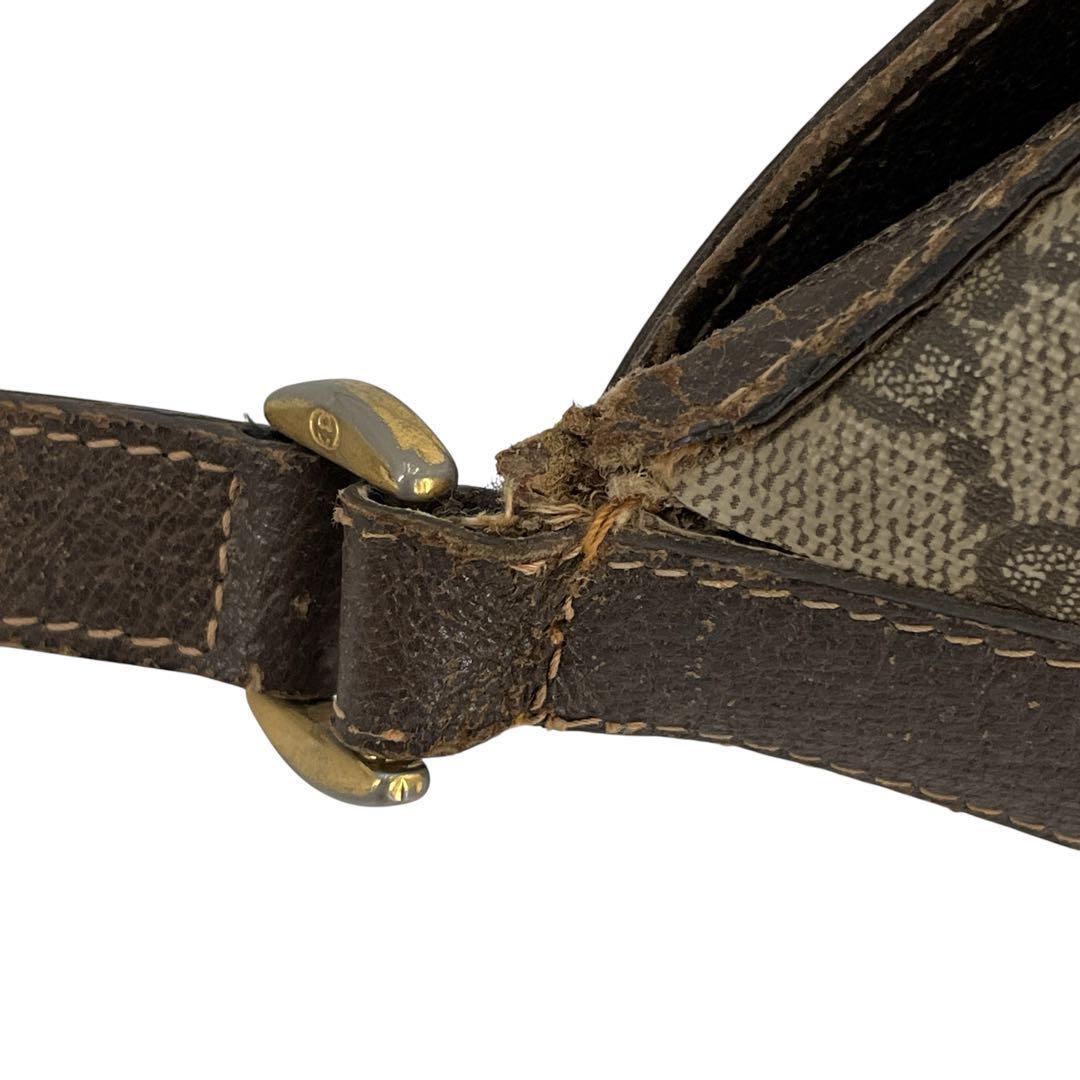 OLD GUCCI ヴィンテージ ビンテージ ベージュ ブラウン PVCレザー ゴールド金具 インターロッキング 総柄 GG柄