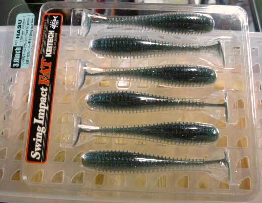 ケイテック スイングインパクトファット 3.8インチ。1パック6本入り。1尾重量:8.5g、推奨フックサイズ:オフセットフック #2/0。