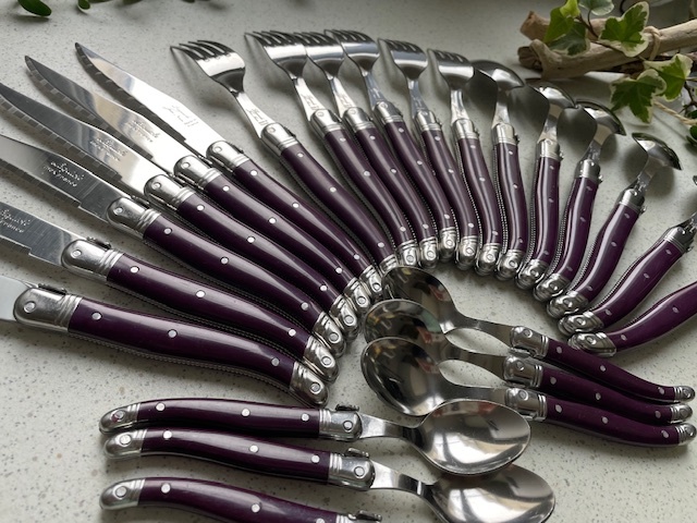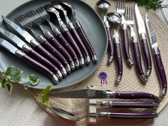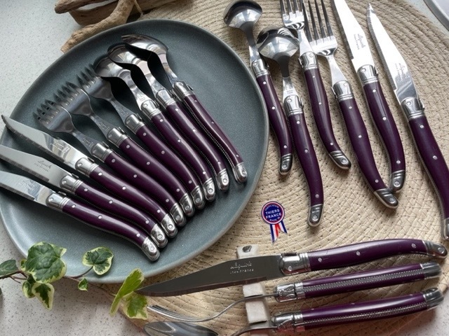 フランス製Laguioleラギオール24本カトラリーライヨル新品パープル色 | |||