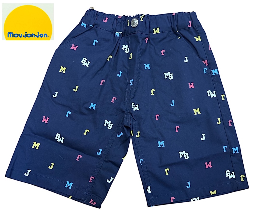 即決 新品タグ付 Moujonjon ムージョンジョン★ロゴ柄 ツイル★五分丈 ストレッチダンプパンツ★ジュニア 140cm ¥1980