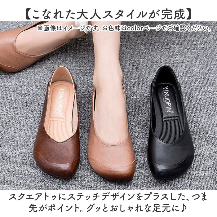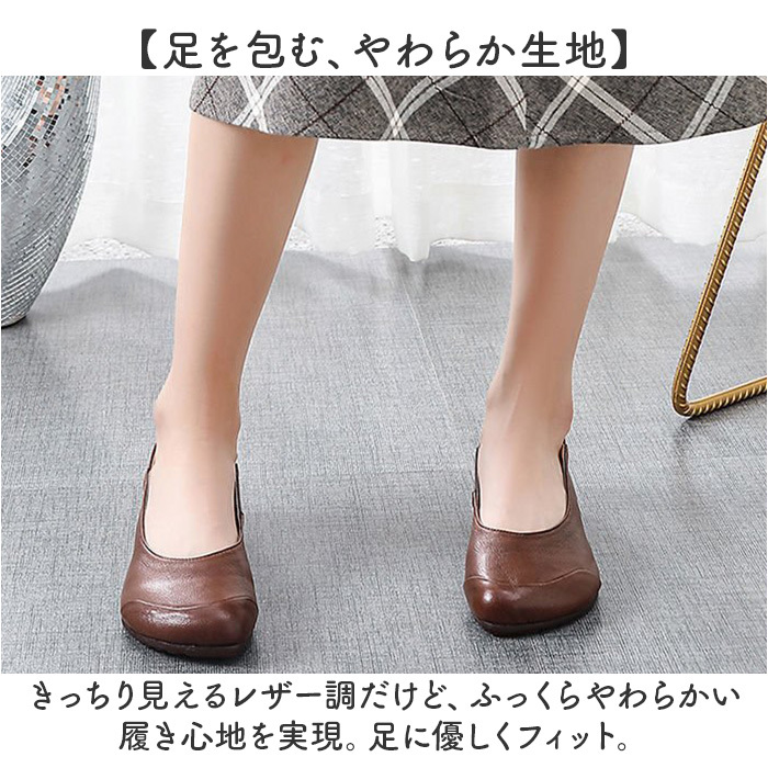 | 商品説明 | ・・【疲れ知らずの優しいパンプス♪】 ・ラクチンだけど大人っぽい。「走れるパンプス」が登場。 ・【こなれた大人スタイルが完成】 ・スクエアトゥにステッチデザインをプラスした、つま先がポイント。グッとおしゃれな足元に♪ ・【足を包む、やわらか生地】 ・きっちり見えるレザー調だけど、ふっくらやわらかい履き心地を実現。足に優しくフィット。 ・【どこまでも歩けそうなフラット仕様】 ・かかととつま先に少し角度をつけ、歩きやすさをUPした作り◎安心のヒールなしパンプス。 ・【歩行が安定する滑り止めつき】 ・靴裏には、滑り止め加工をON!雨の日や滑りやすいタイルの上も、歩行をスムーズに。 ・【シンプルだから合わせやすい】 ・幅広いコーデにマッチする、シンプルさが魅力。パンツもスカートおまかせ! |