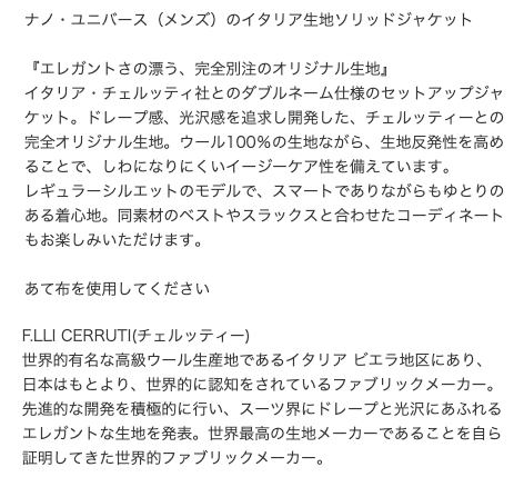 チェルッティ社 高級ウール nano universe ジャケット テーラード スーツ ナノ ユニバース サイズ M 6689217014 無地 gray ブレザー