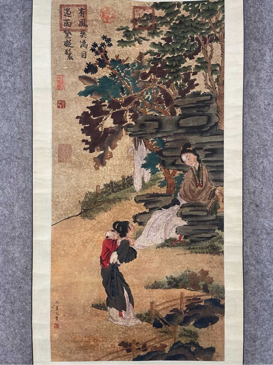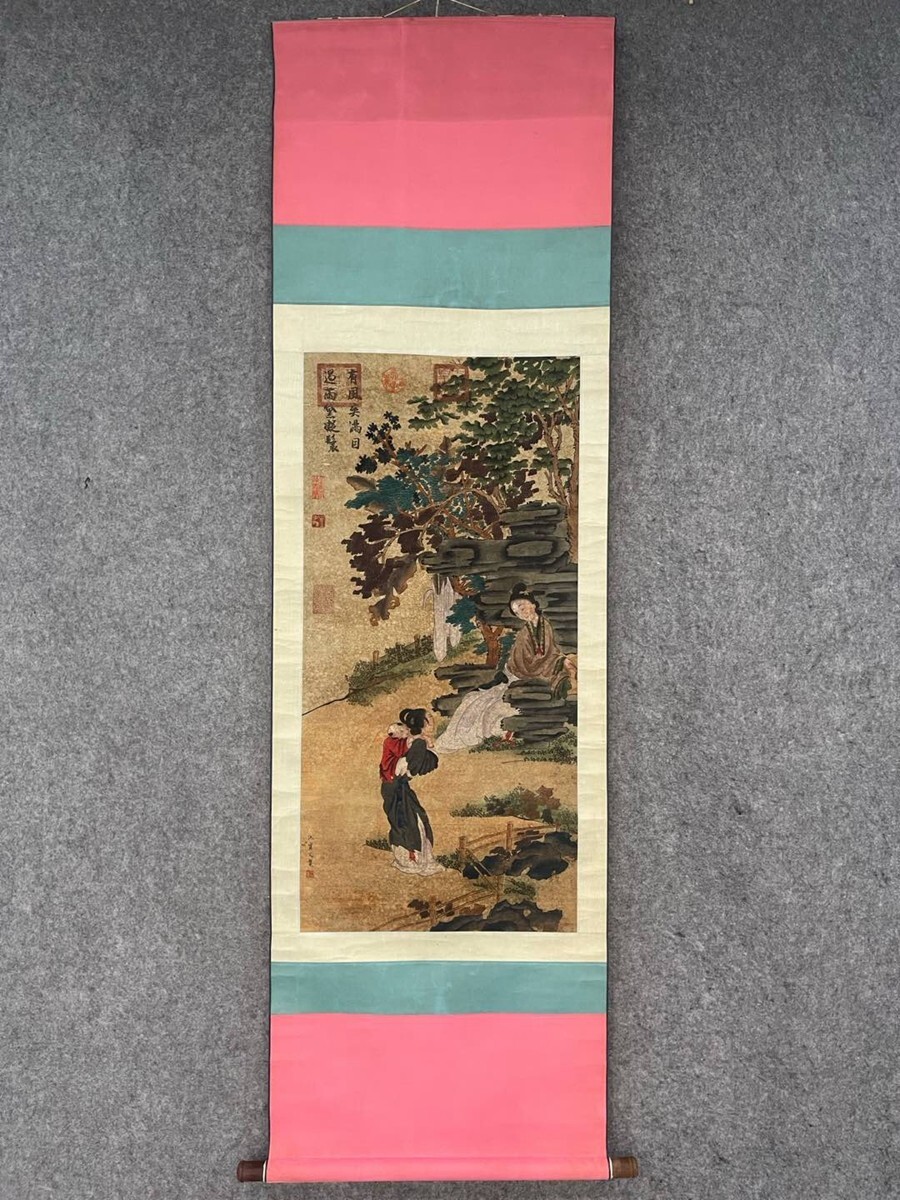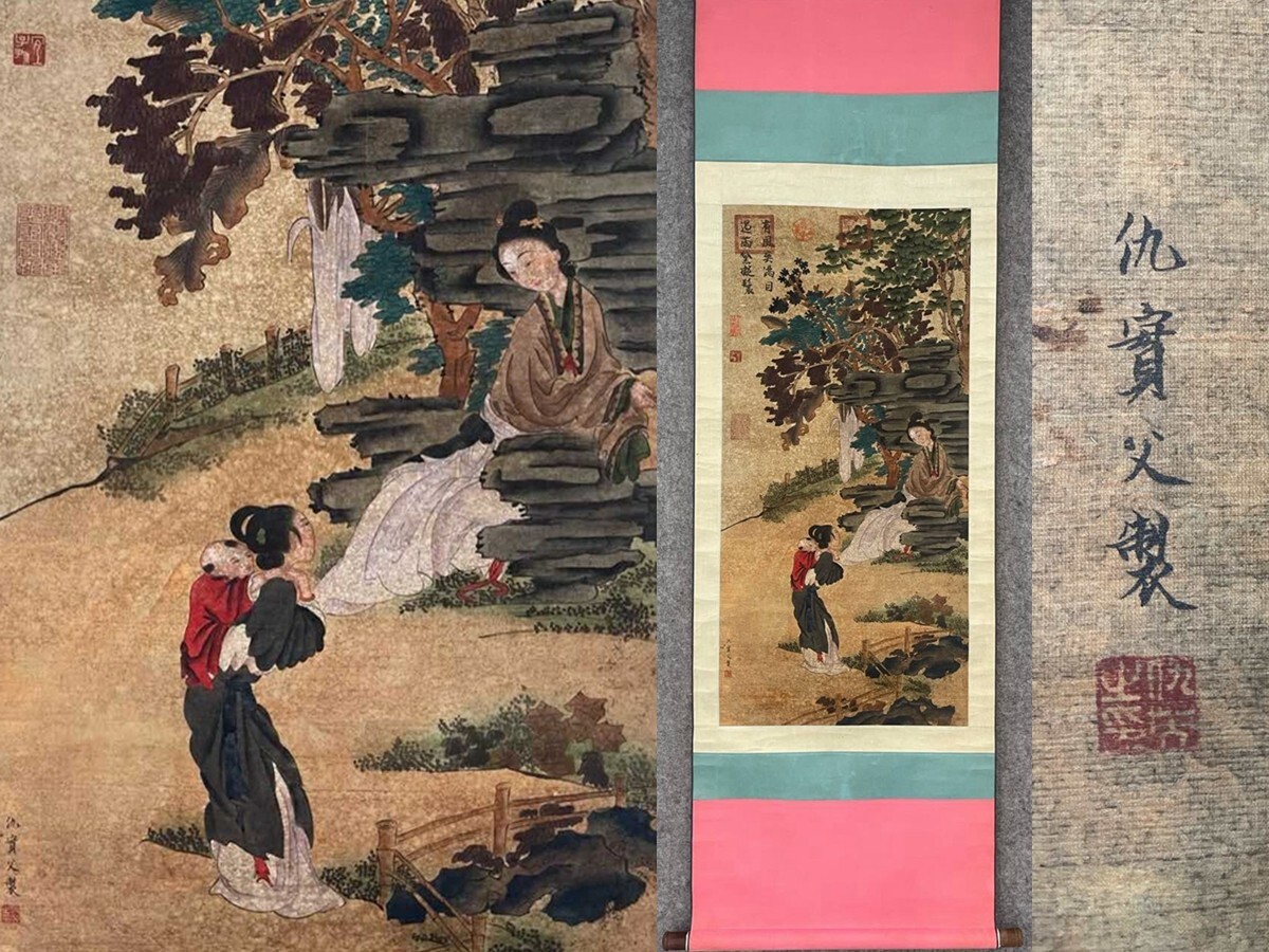中国書画「明 仇英 人物図」肉筆絹本 掛け軸 墨寶妙品 書画立軸 巻き物 古美術 旧蔵出