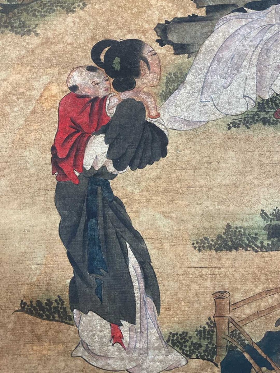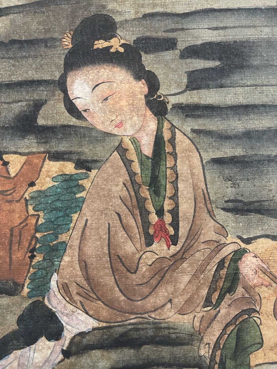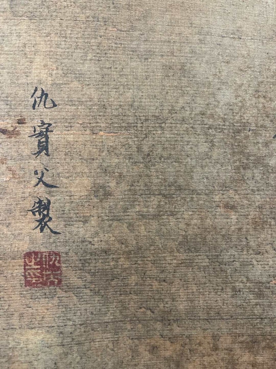 中国書画「明 仇英 人物図」肉筆絹本 掛け軸 墨寶妙品 書画立軸 巻き物 古美術 旧蔵出