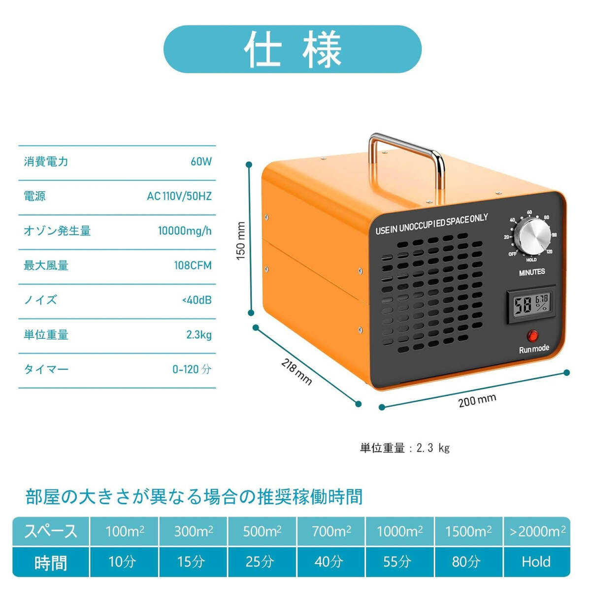 オゾン発生器10000mg オレンジ O3脱臭機 工業用 滅菌消臭 持ち運び脱臭装置 ポータブル 家庭 車 部屋 ホテル 農場 悪臭除去