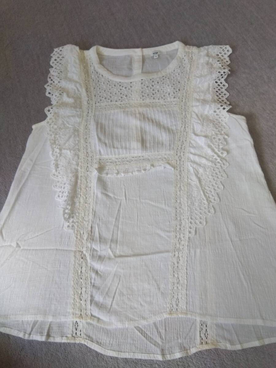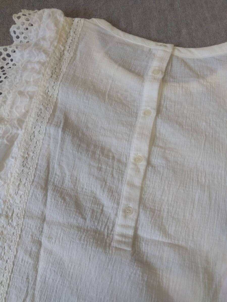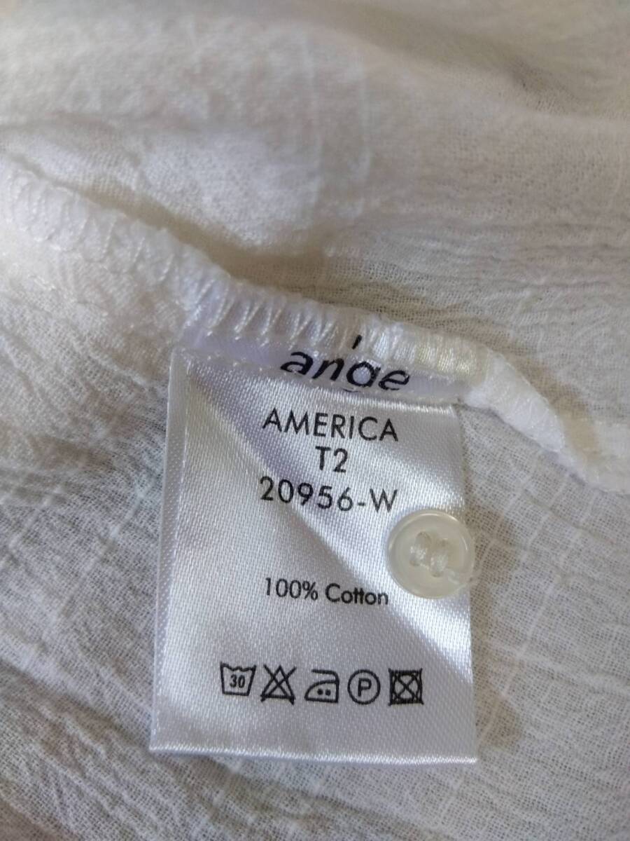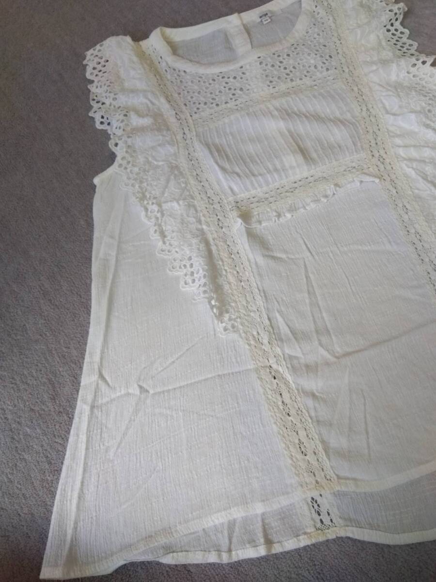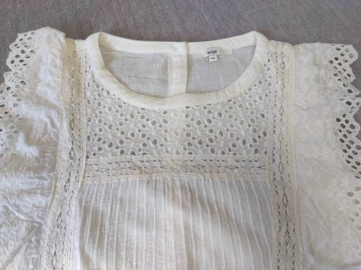 半袖 カットソー サイズT2 身幅52 an'ge オフホワイト レース