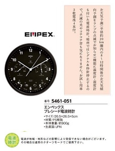 【商品番号】 5461-051 【商 品 名】 エンベックス プレシード電波時計 |