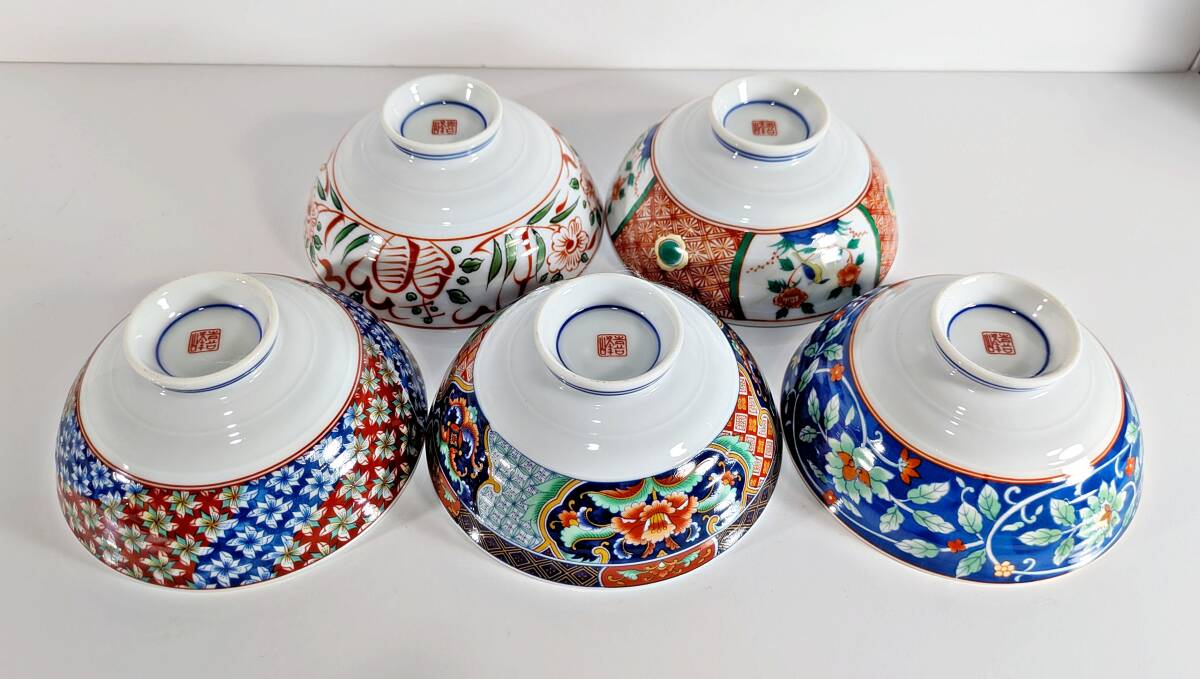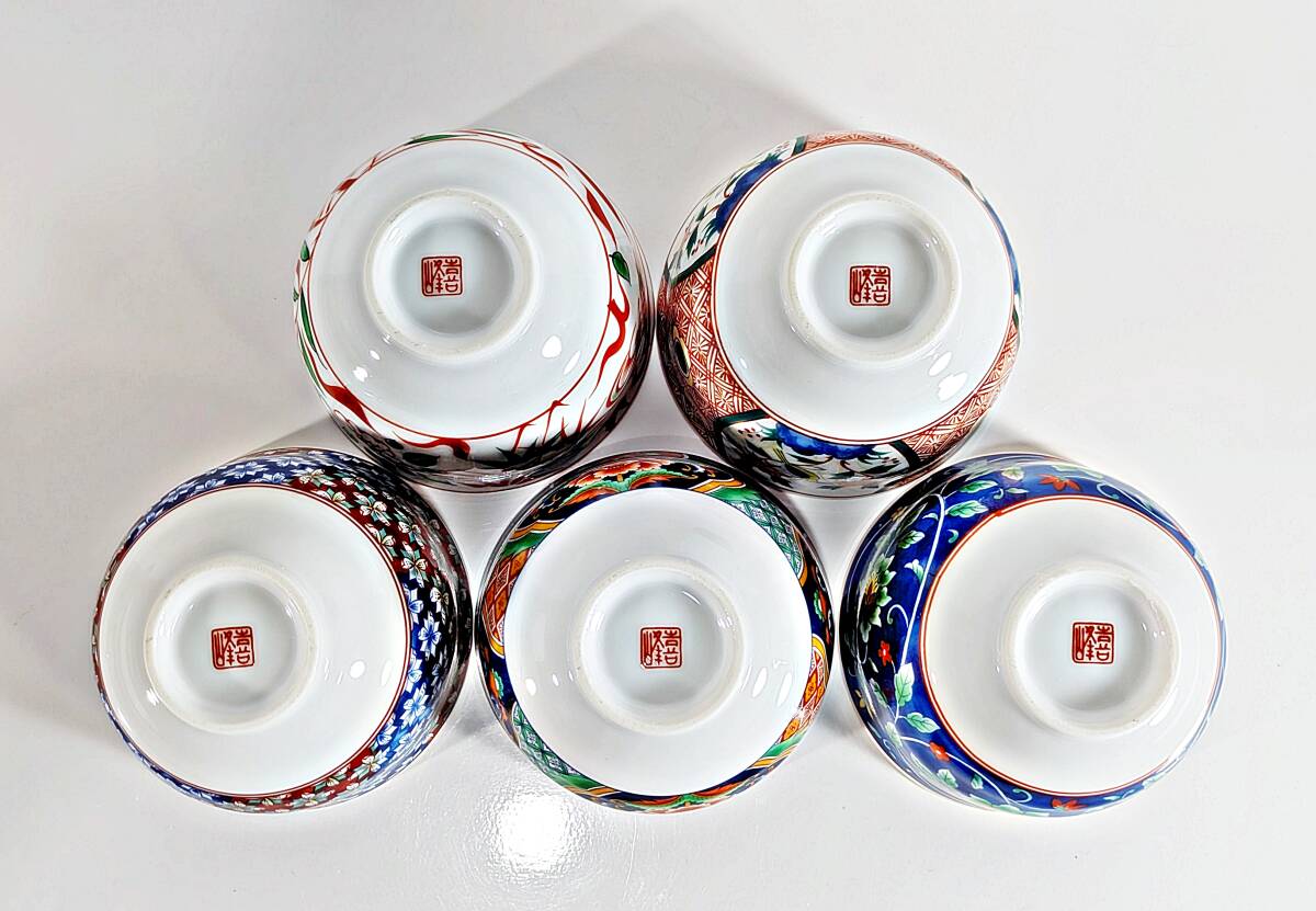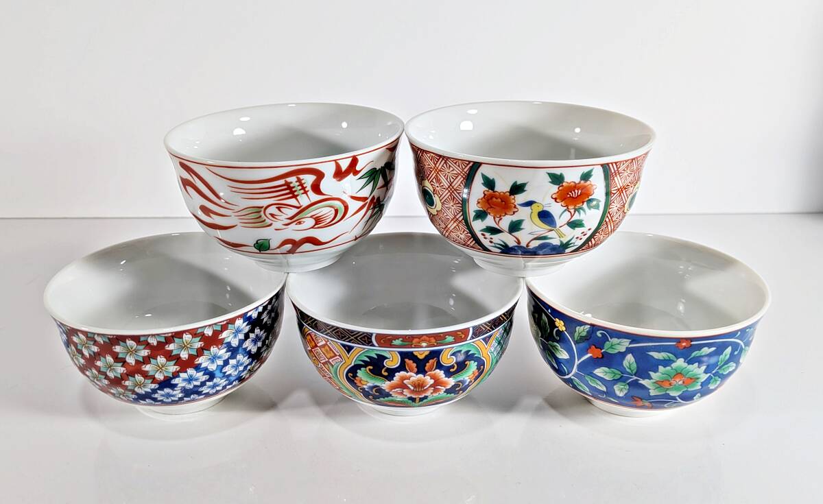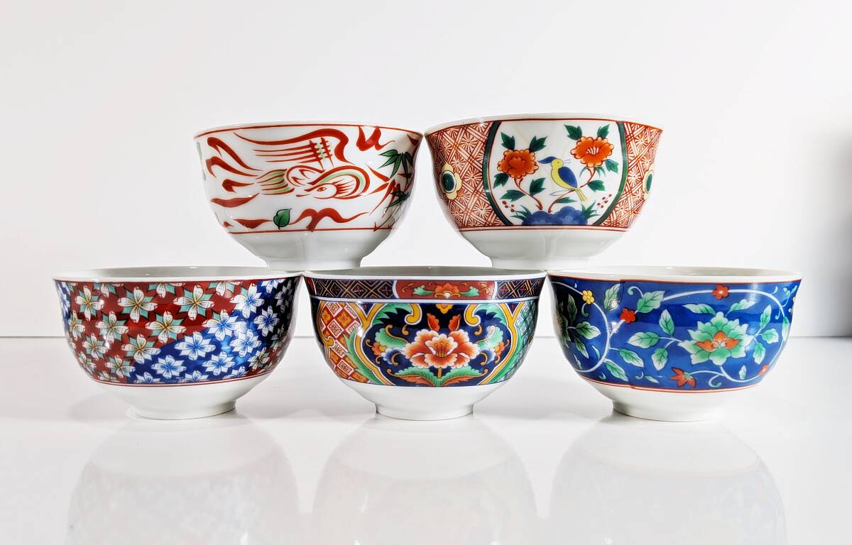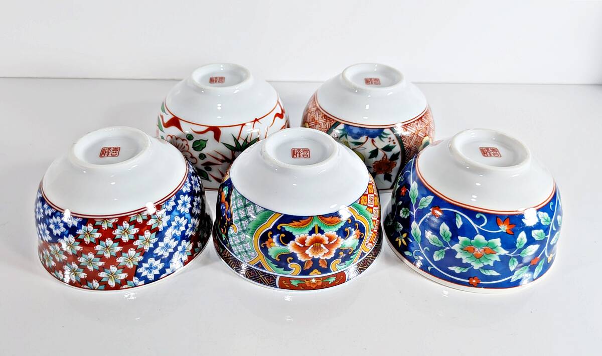 ★有田焼 喜峰窯 翆泉 染錦 だんらん揃 飯碗・湯呑み五客セット★