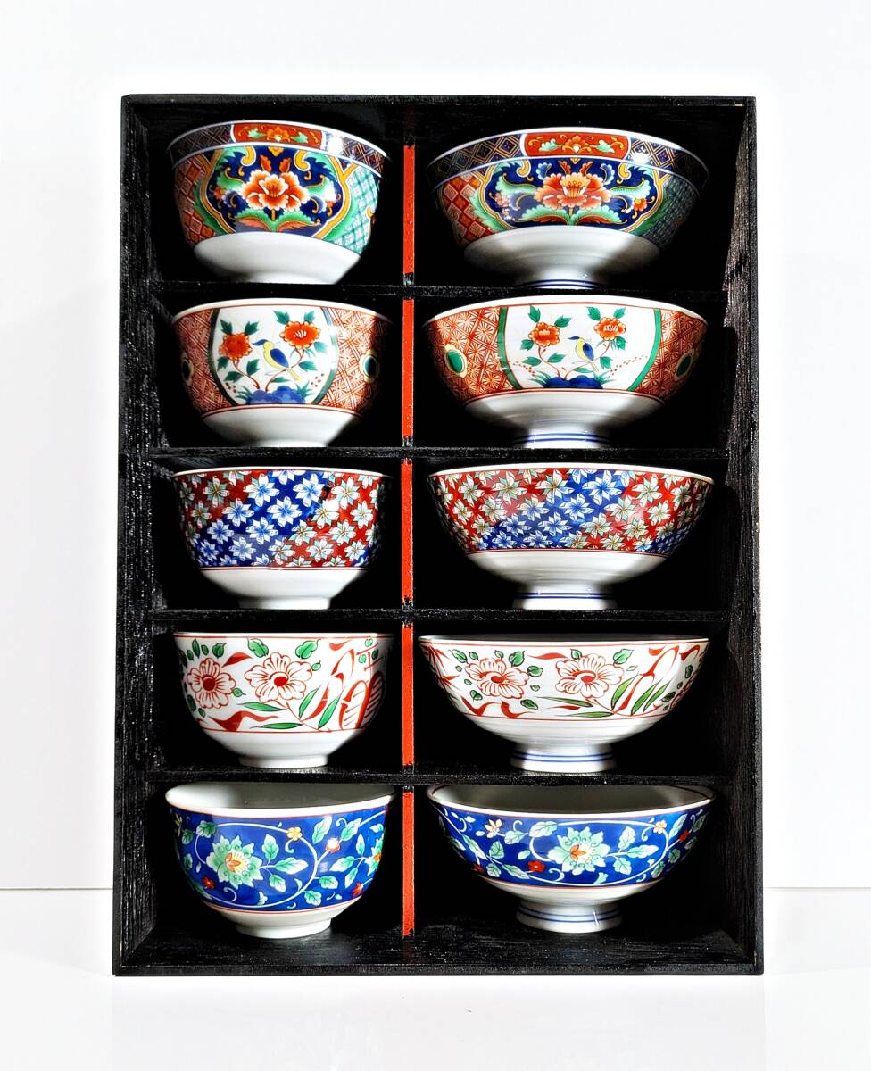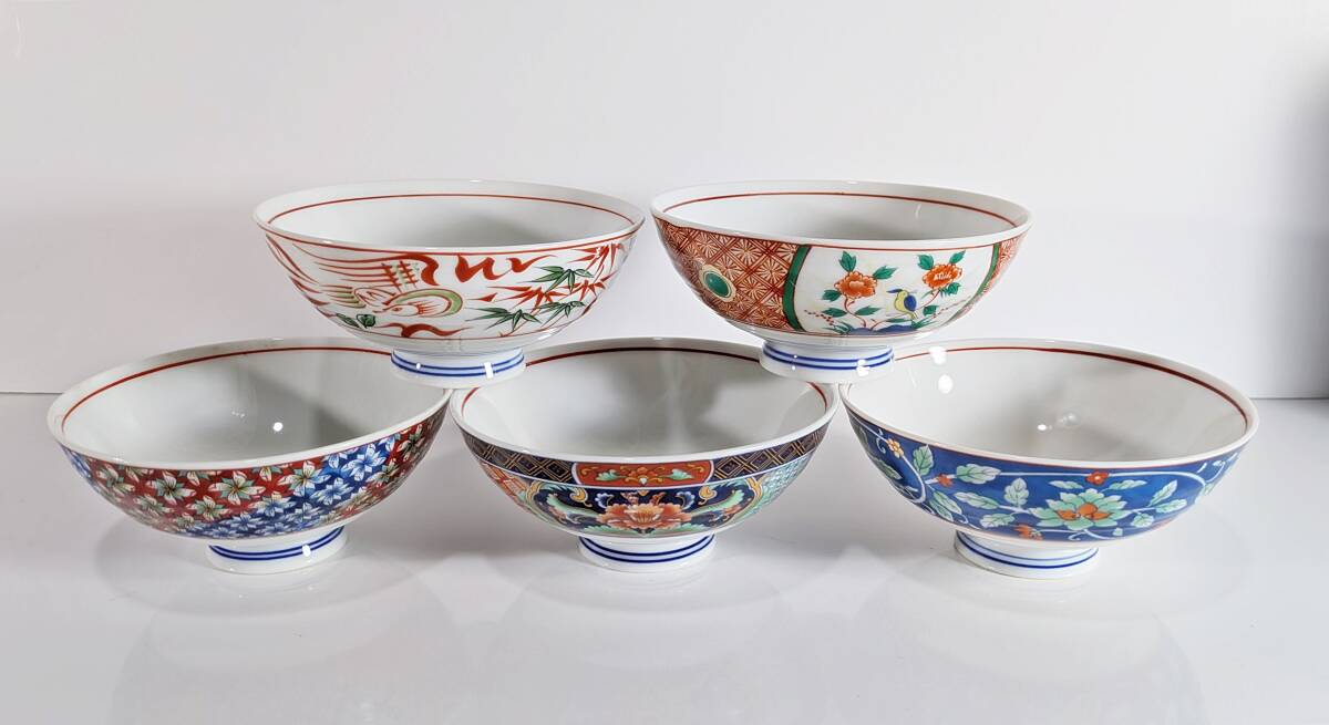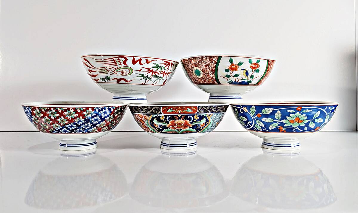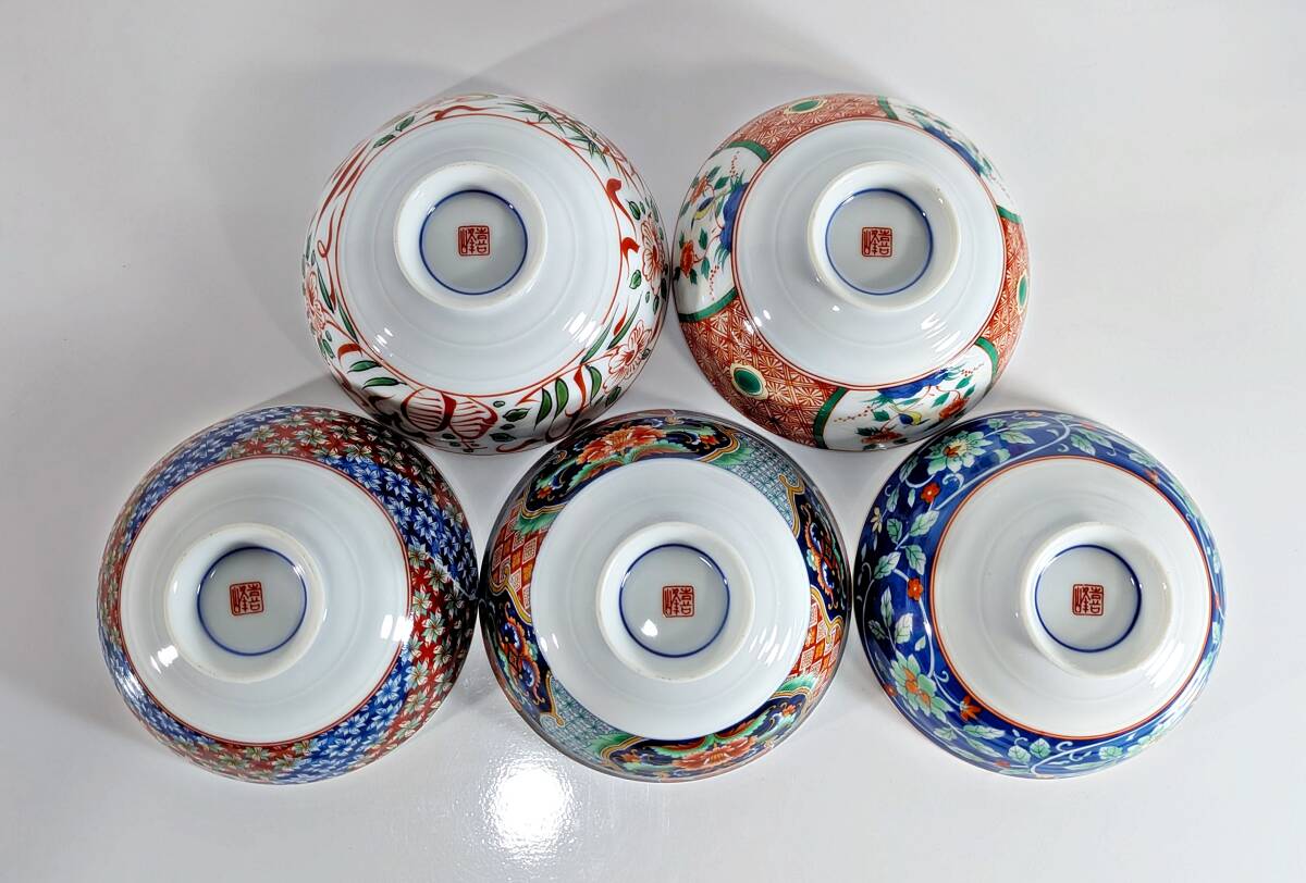 ★有田焼 喜峰窯 翆泉 染錦 だんらん揃 飯碗・湯呑み五客セット★