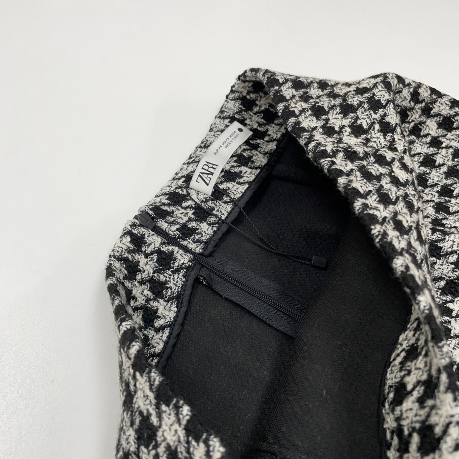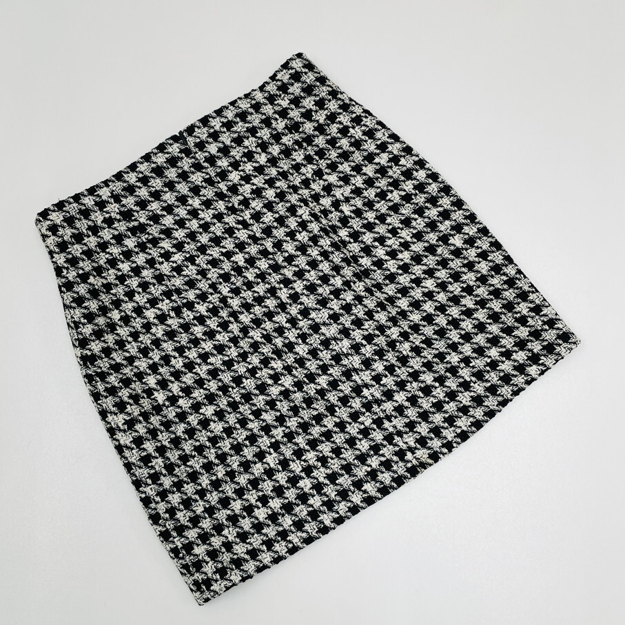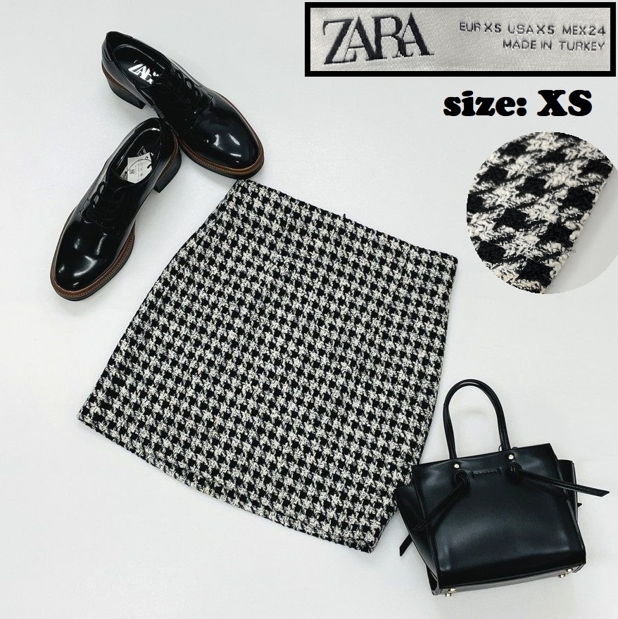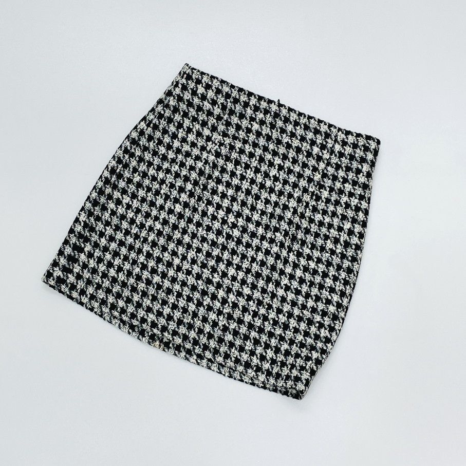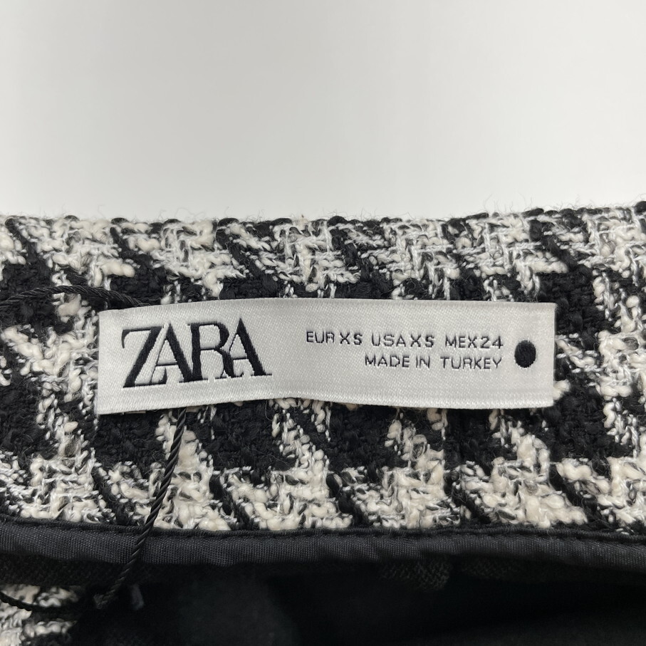 ZARA /XS/ ツイードミニスカート レディース ブラックホワイトチェック カジュアル通勤 フェミニン 大人可愛い生地 ガーリー デイリー ザラ