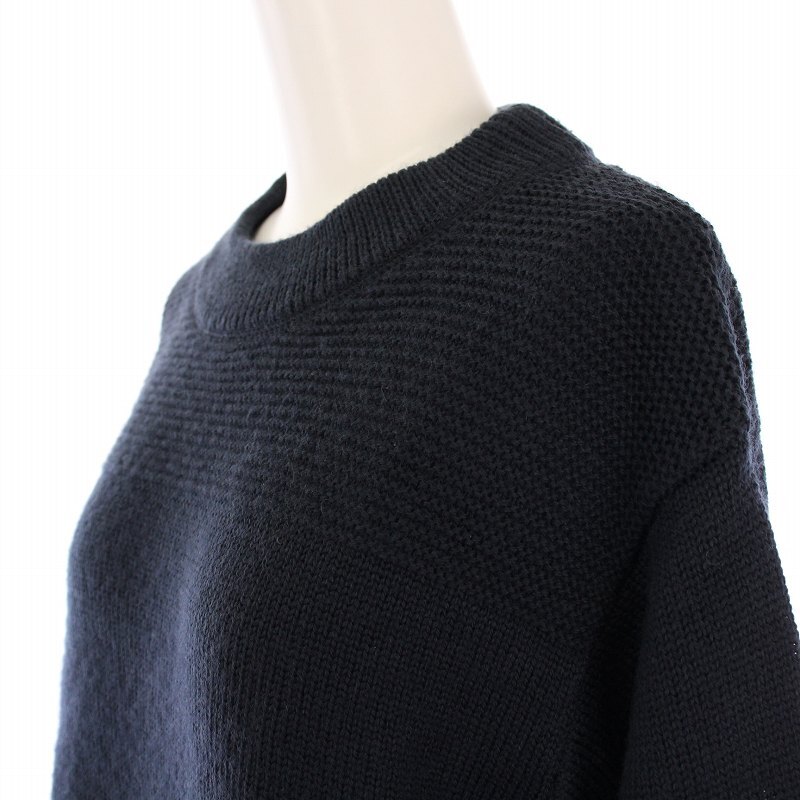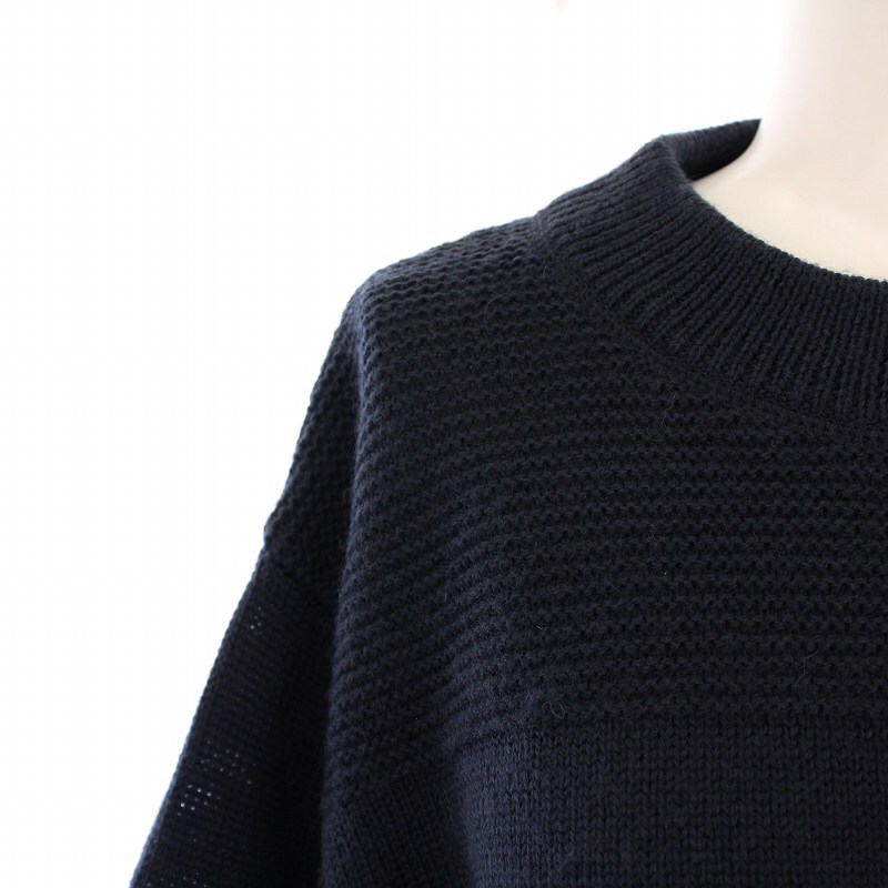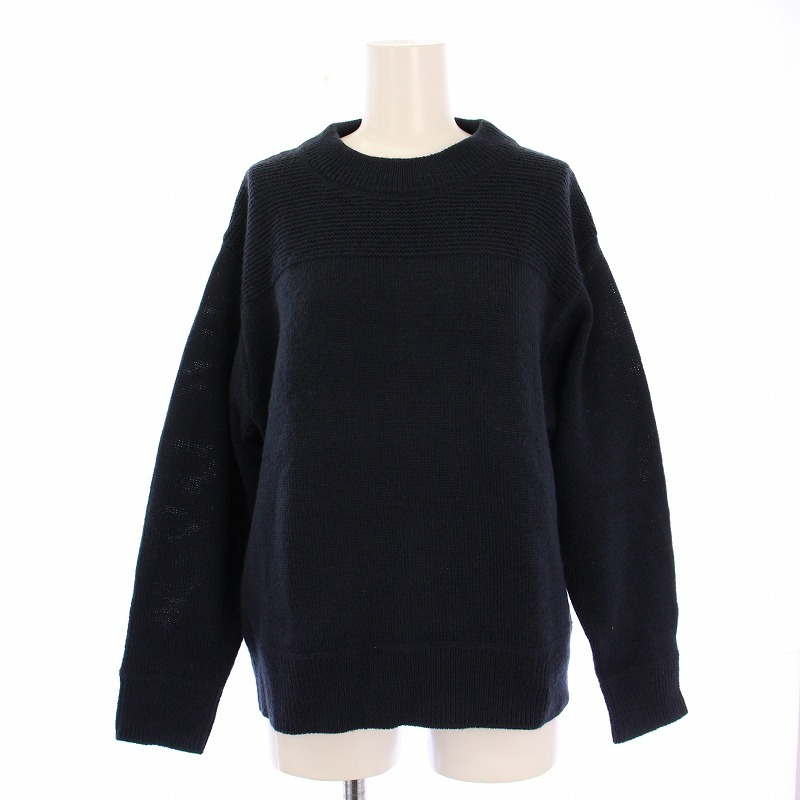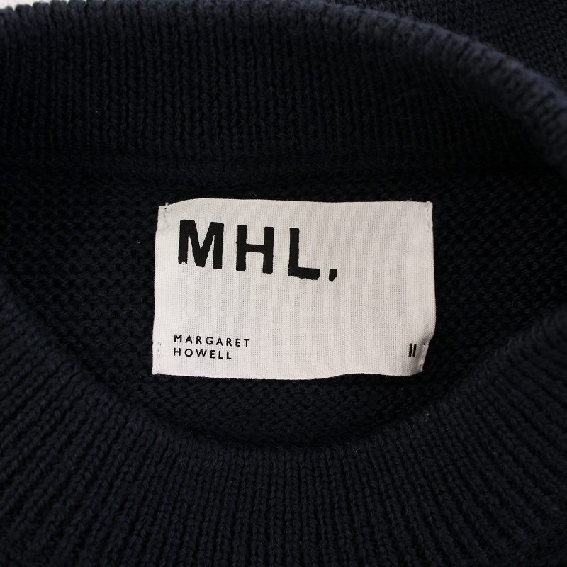 マーガレットハウエル MHL. 23AW DRY DENSE WOOL ニット セーター 長袖 クルーネック 無地 ウール 2 紺 ネイビー 595-3263550
