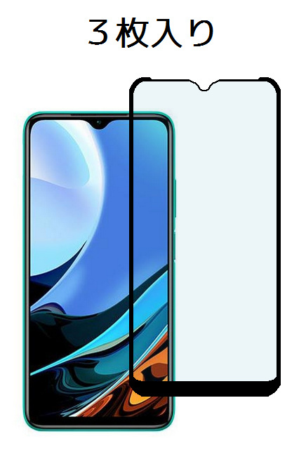 3枚入り Redmi9T 強化ガラスフィルム フルカバー Full Glue