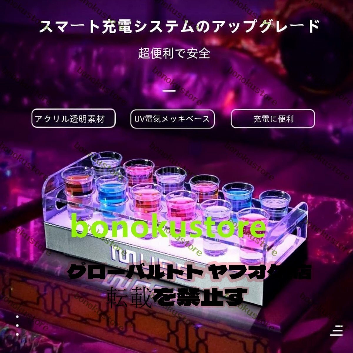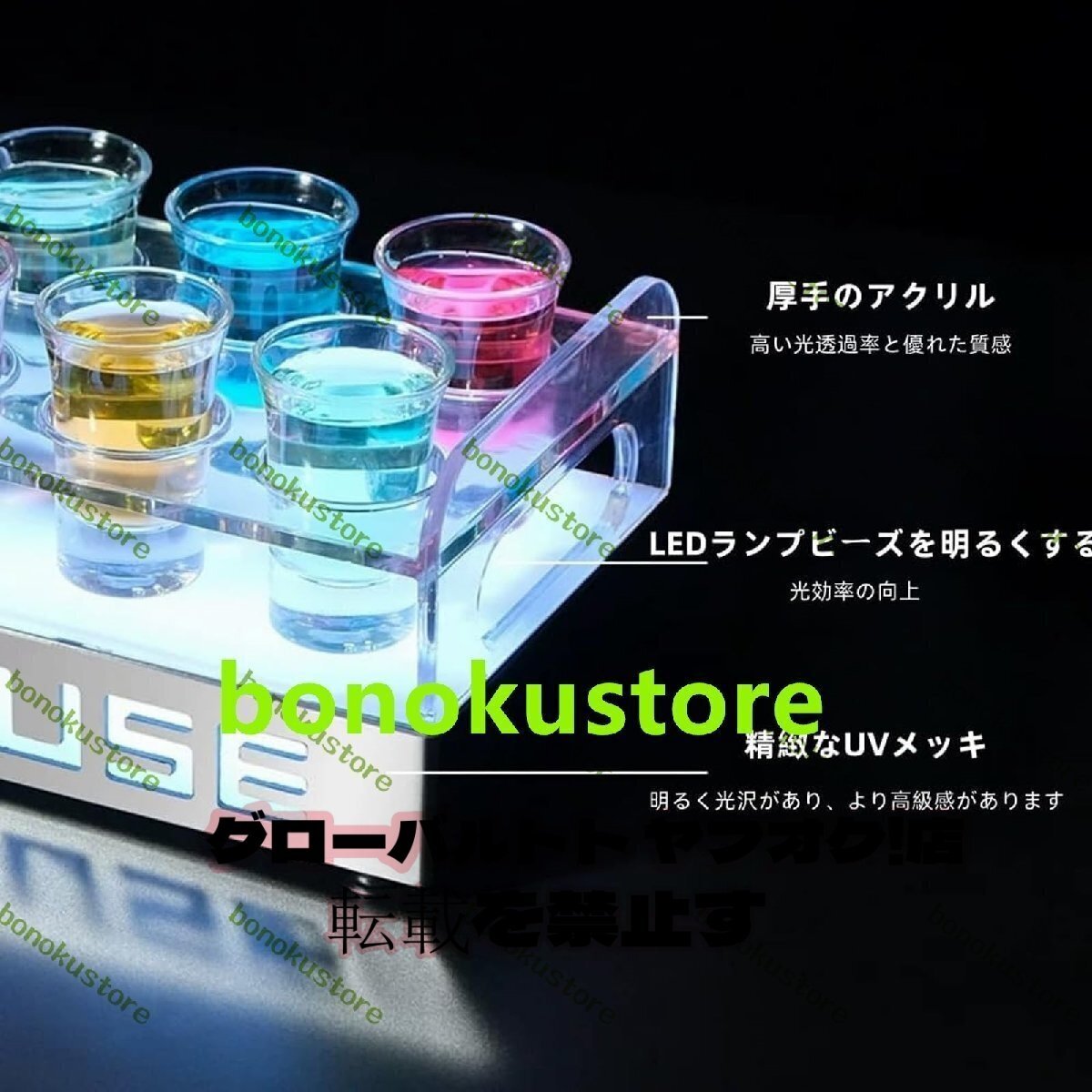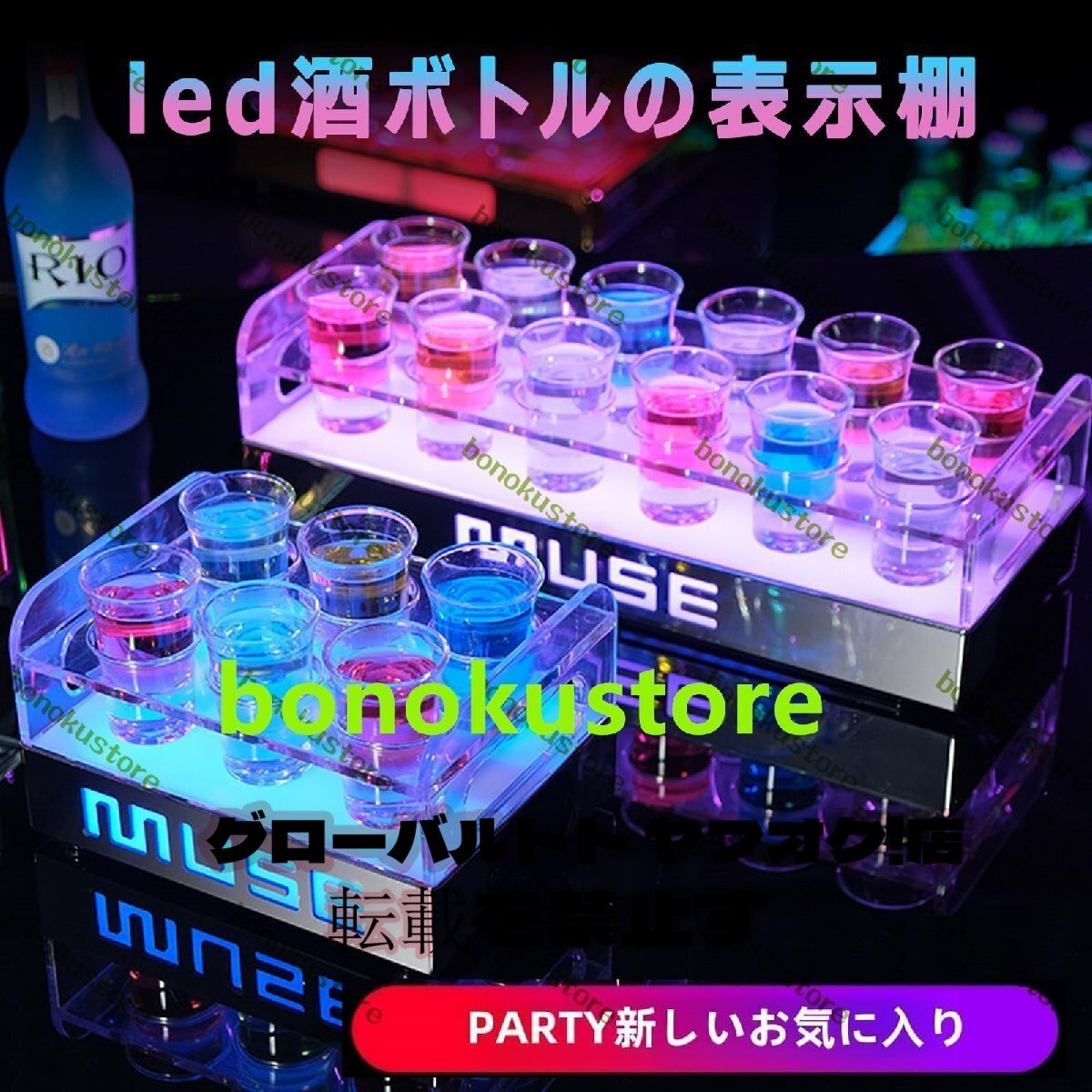 led酒ボトルの表示棚 ワインラック 充電式【ワイングラス含ま 】コカボムタワー カクテルグラスホルダー アイスワインラック 家庭用/商業用 居酒屋、KTV、ナイトクラブ おしゃれ 雰囲気を追加します 酒グラススタンド 銀-カラフルな光 6穴