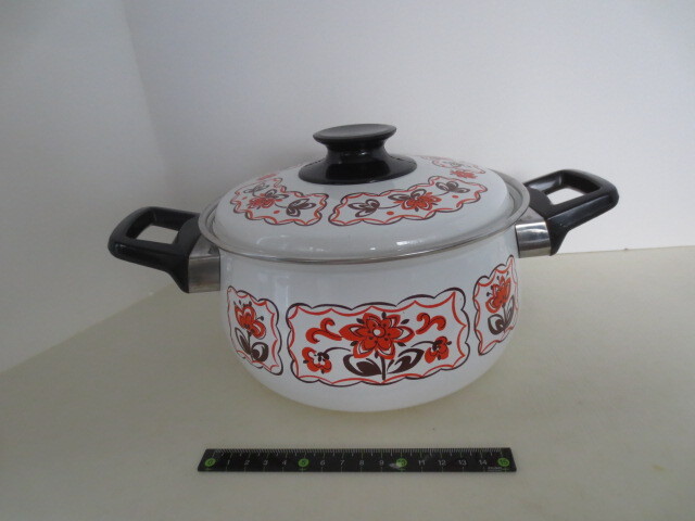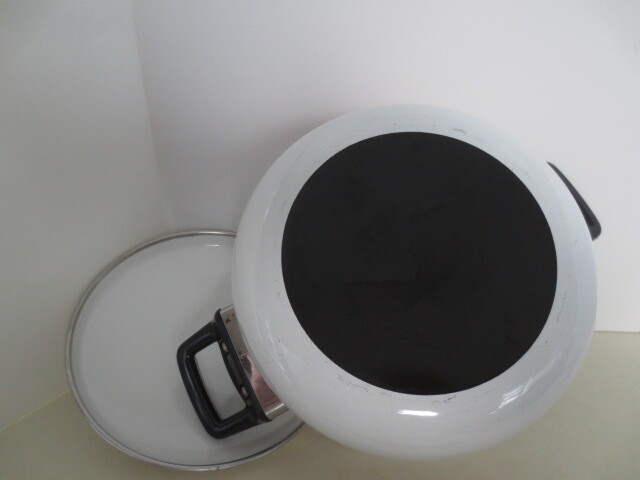 定形外郵便発送 昭和レトロ ホーロー鍋 未使用品 多少劣化あり なべ高さ10.5㎝ 直径20㎝ 蓋つきの全体高さ15㎝ 全体の幅31㎝