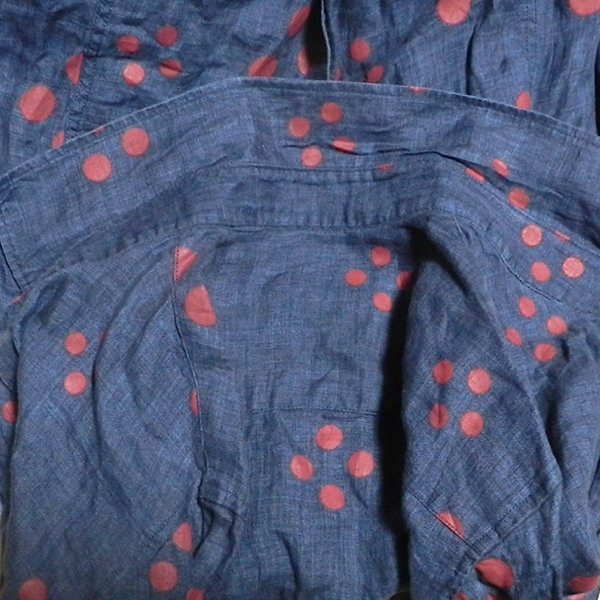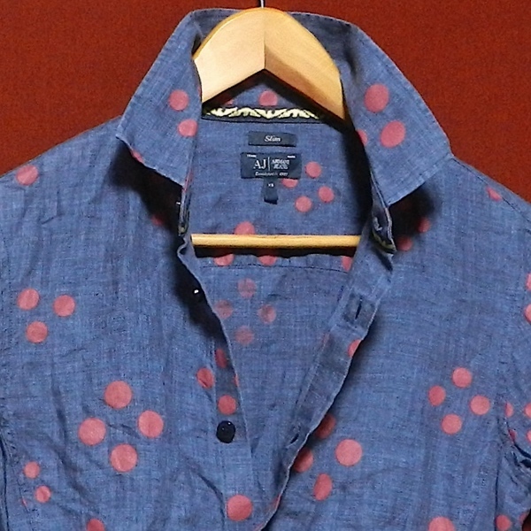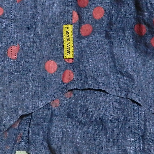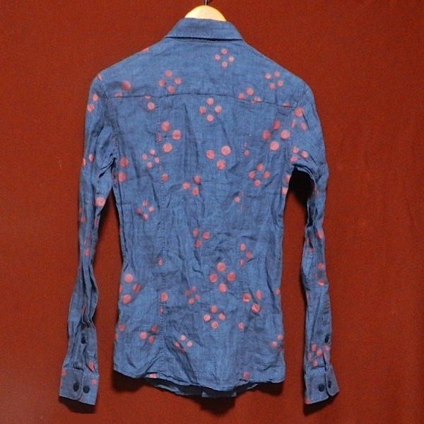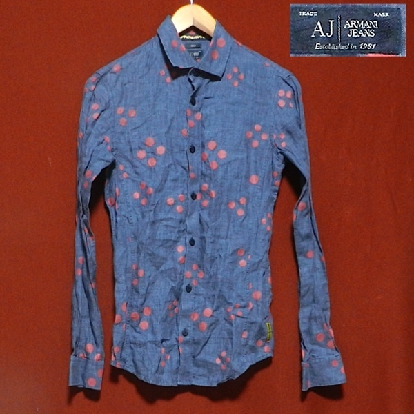 ARMANI JEANS アルマーニ ジーンズ スリム 長袖シャツ ヘンプ リネンシャツ ドレスシャツ デザインシャツ 紺 ペイント ドット柄 XS 美品