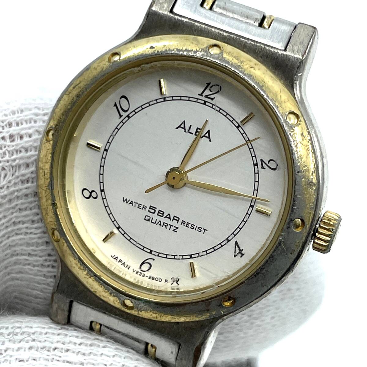 【電池切れ】SEIKO セイコー ALBA アルバ クォーツ 腕時計 アイボリー文字盤 ラウンド ゴールド×シルバー コンビ 金属ベルト V233-0620