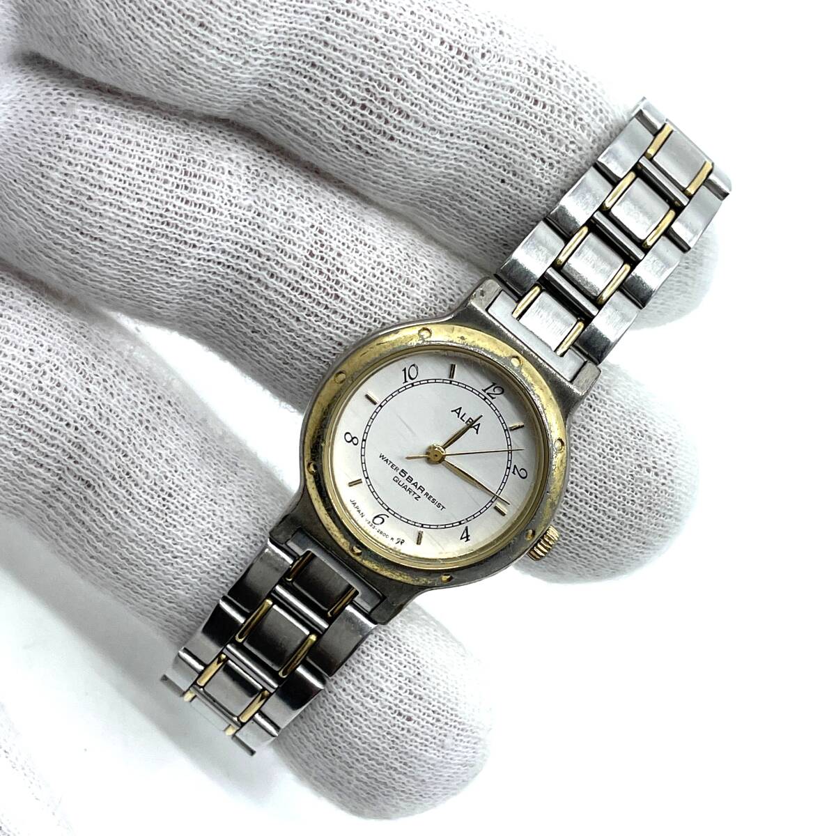 ALBA アルバ クォーツ 腕時計 アイボリー文字盤 ラウンド ゴールド×シルバー コンビ 金属ベルト レディース 部品取り