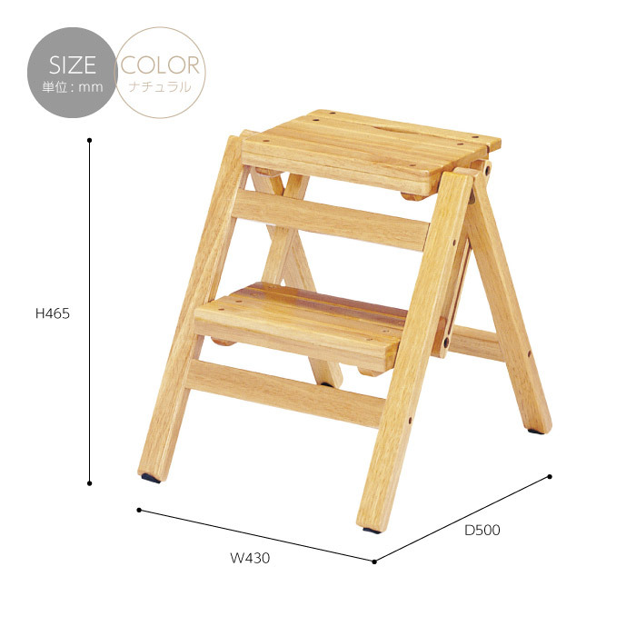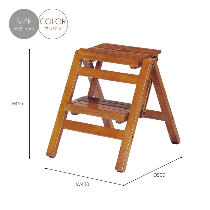 | どっしり安定した天然木ステップチェア。 キッチンや押入れなどの高いところのものを取るときや、小さなお子様の踏み台としても◎ 折り畳めば薄型の形状になるため、非常にコンパクト。 折り畳み時は約11mmになり、家具のすき間に収納できます。 座面取っ手を持ち上げるだけでワンタッチで折り畳み可能。 カラーはブラウン、ナチュラルの2色よりお選びいただけます。 2段タイプの他に3段タイプもございます。 ※こちらのページは2段タイプを販売しております。 |